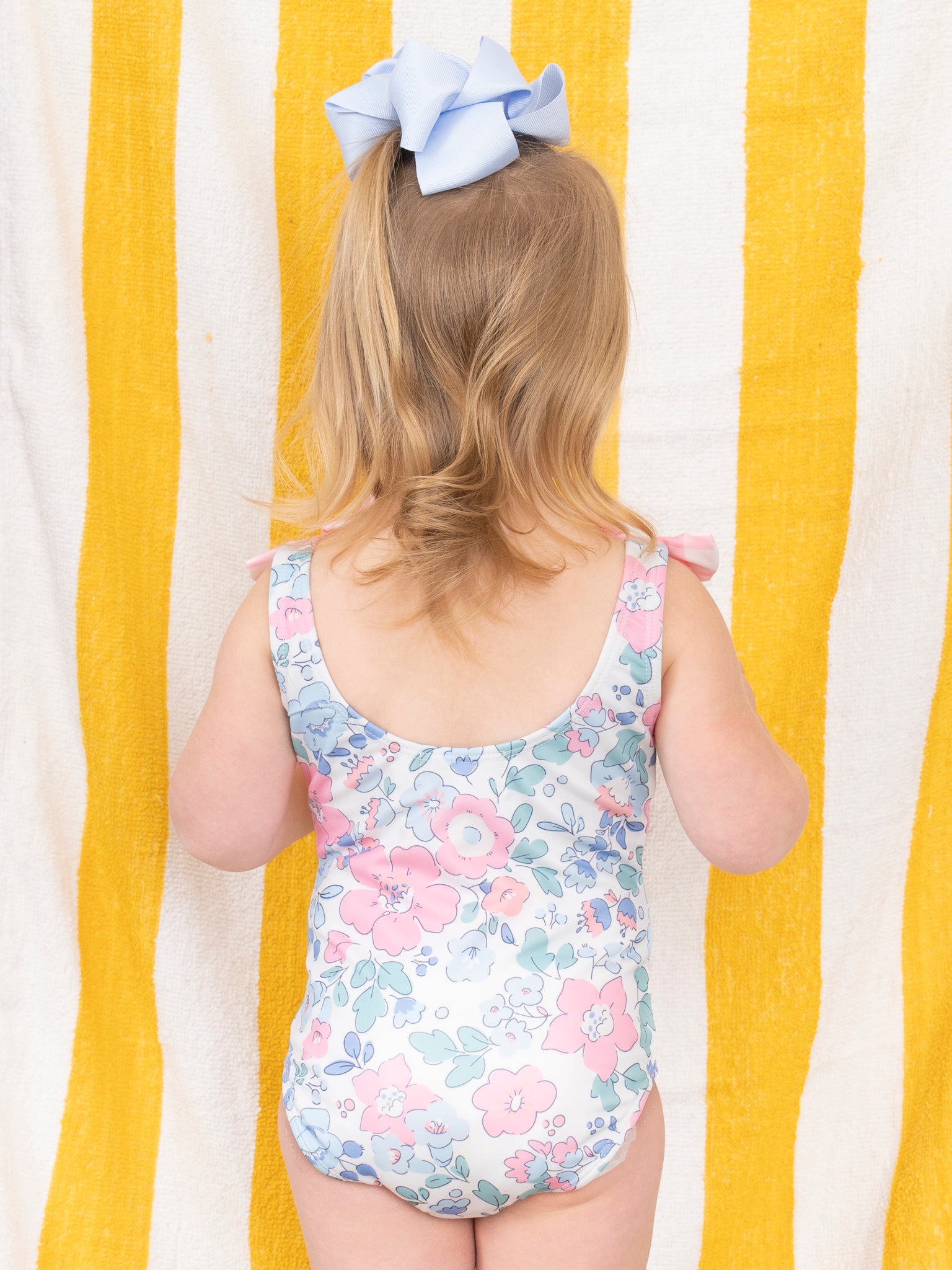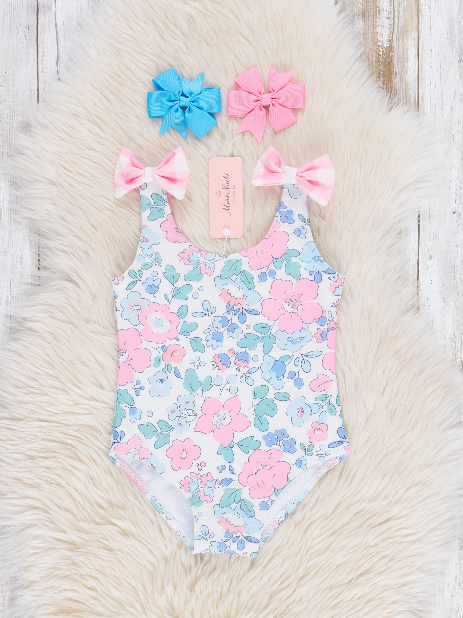 Cottage Floral & Gingham Bow Tie One Piece Swimsuit