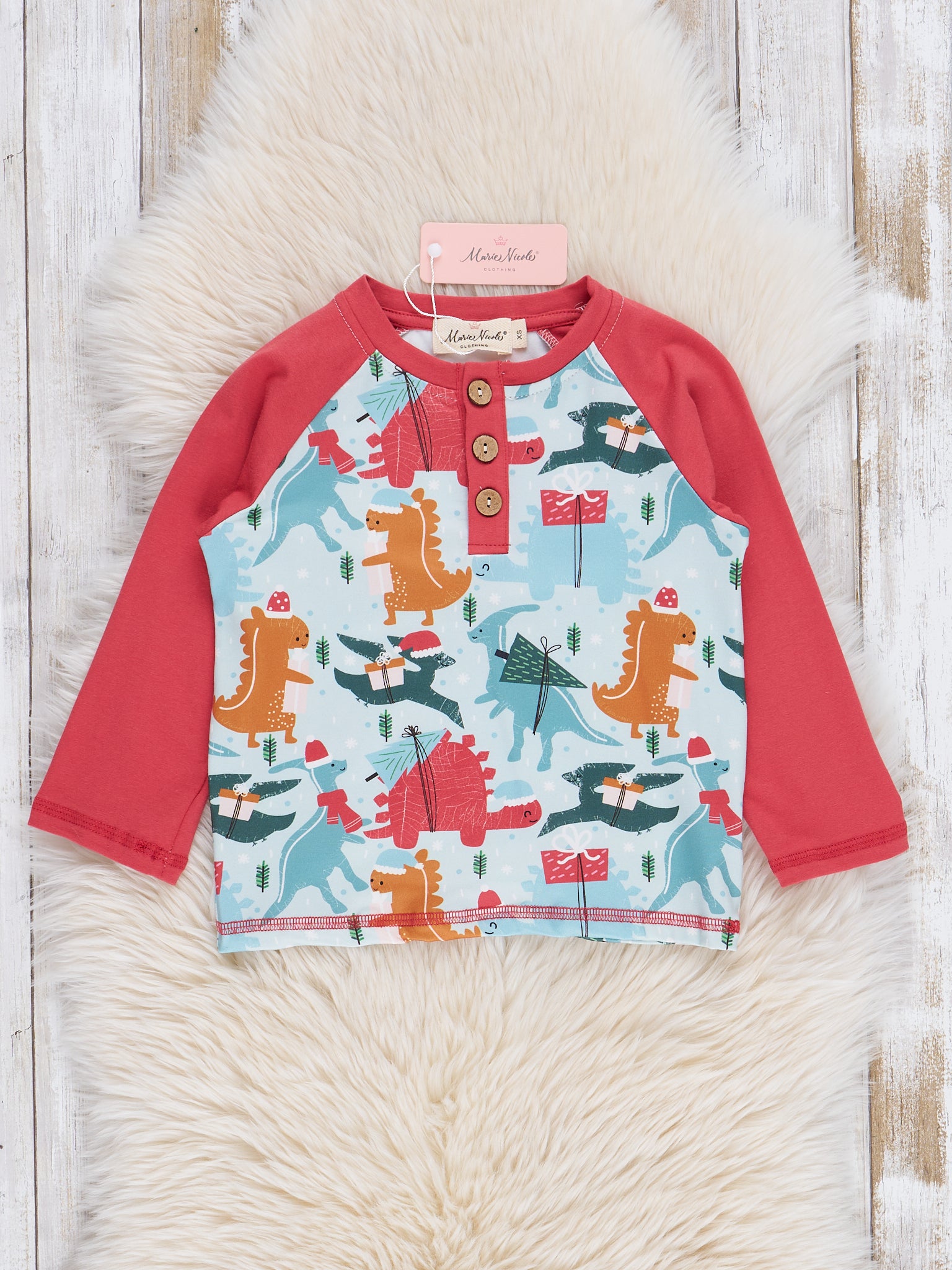 Vintage Red Holiday Dinosaurs Raglan Shirt