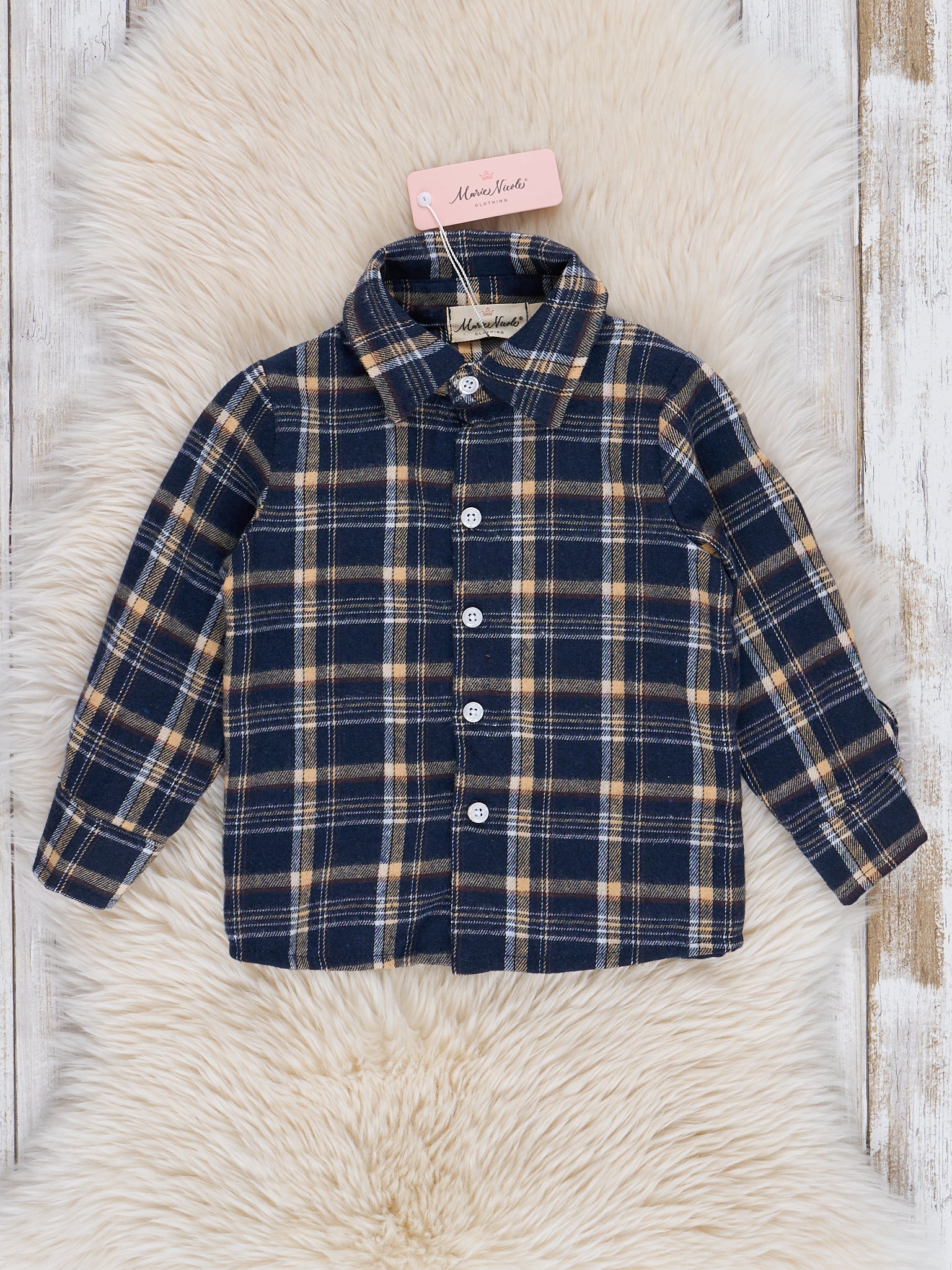 Midnight Blue Plaid Button-Up Flannel Shirt
