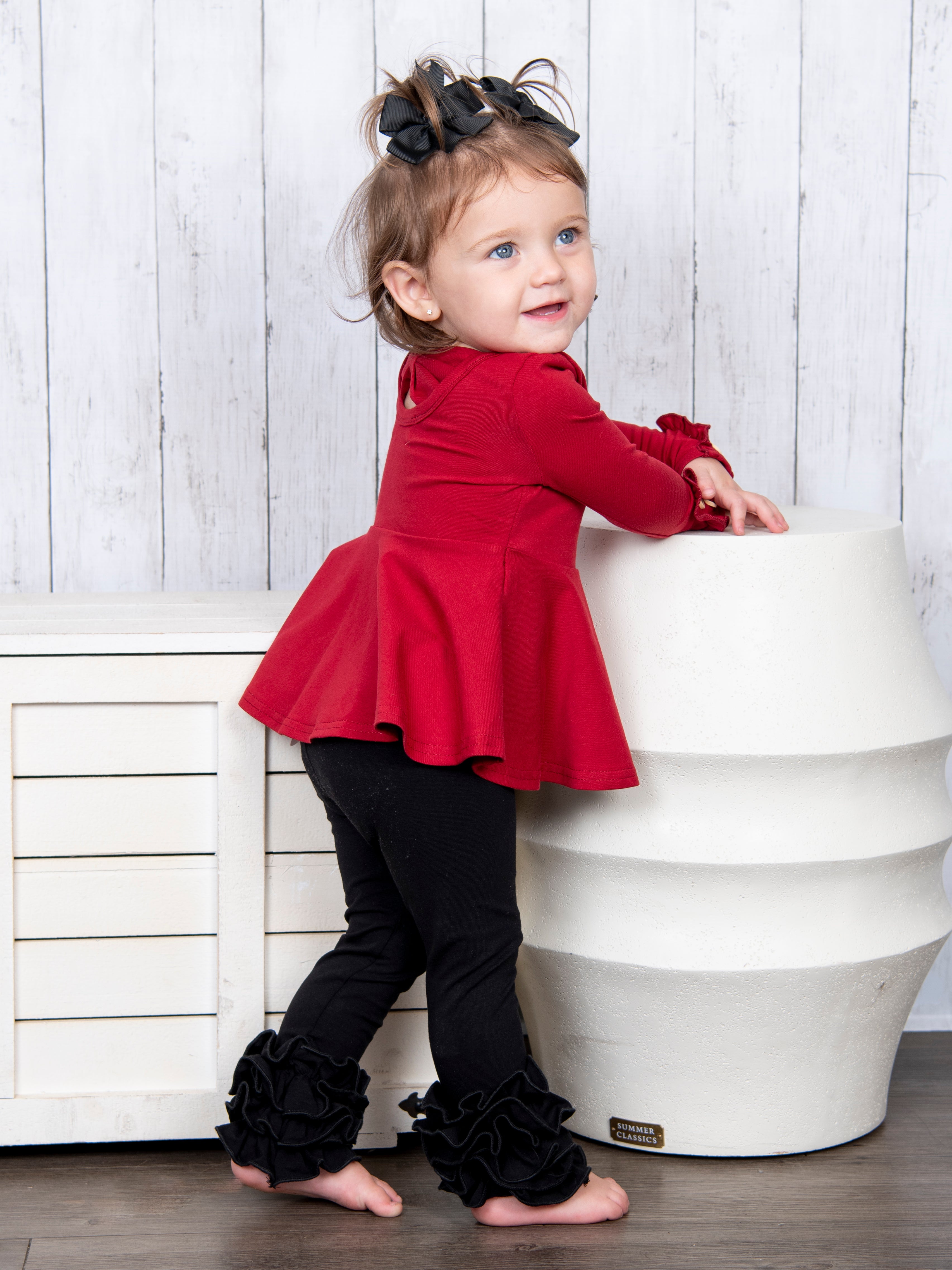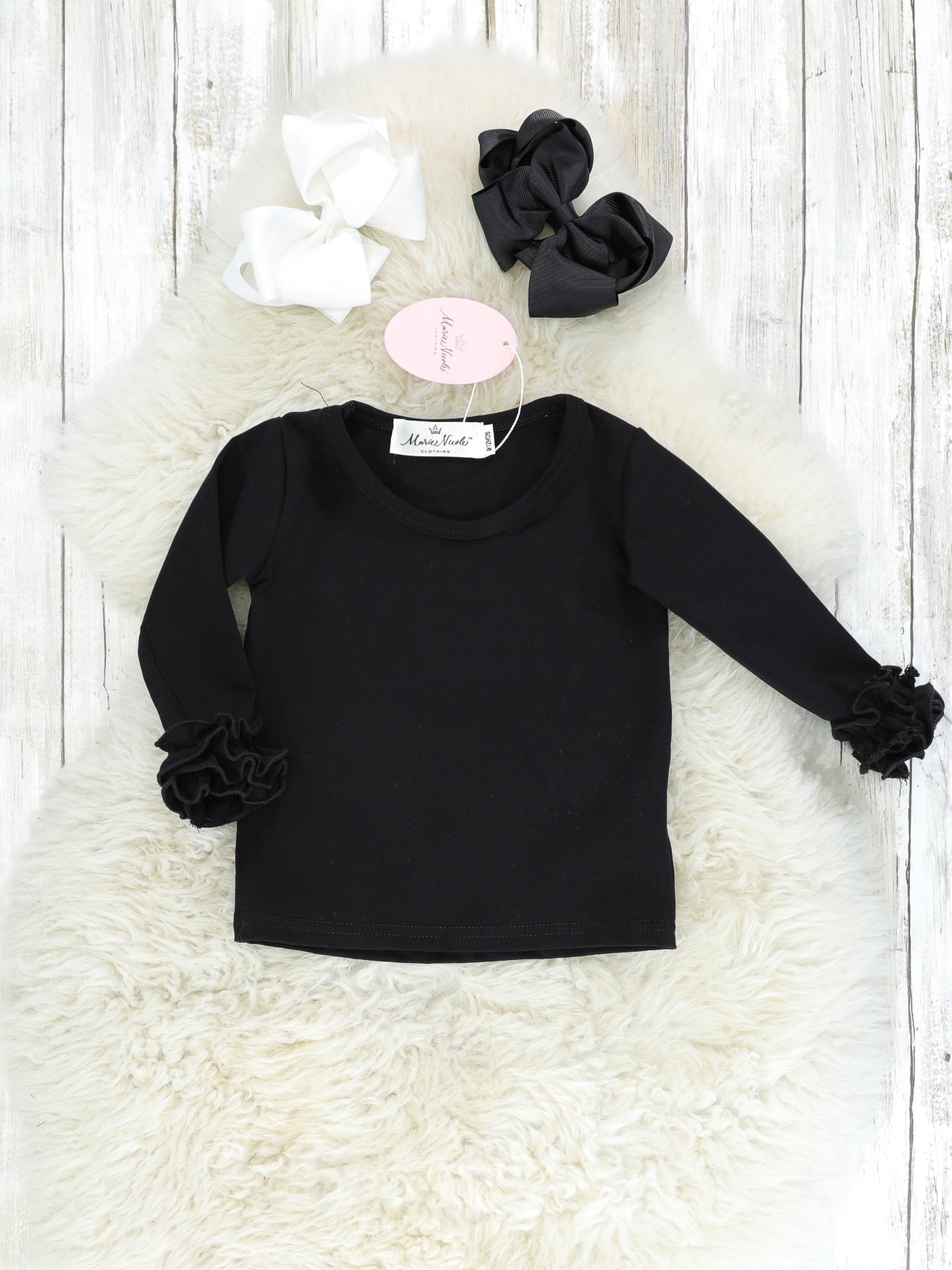 Cotton Ruffle Hi-Low Tunic Top - Black