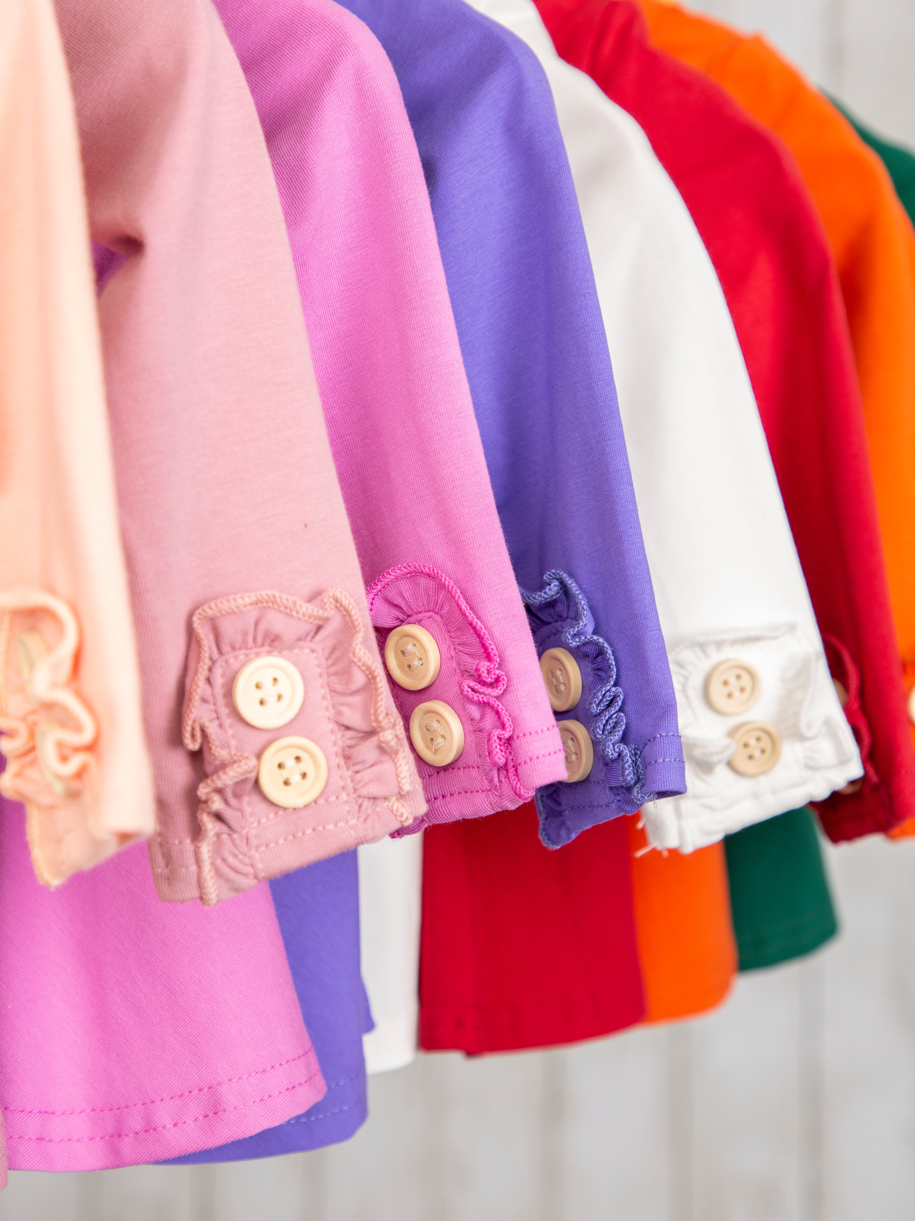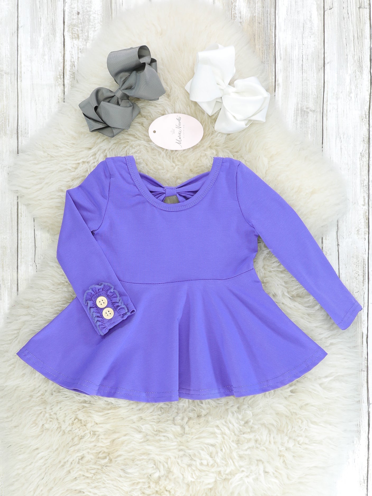 Cotton Bow Back Button Ruffle Sleeve Peplum Top - Light Colors