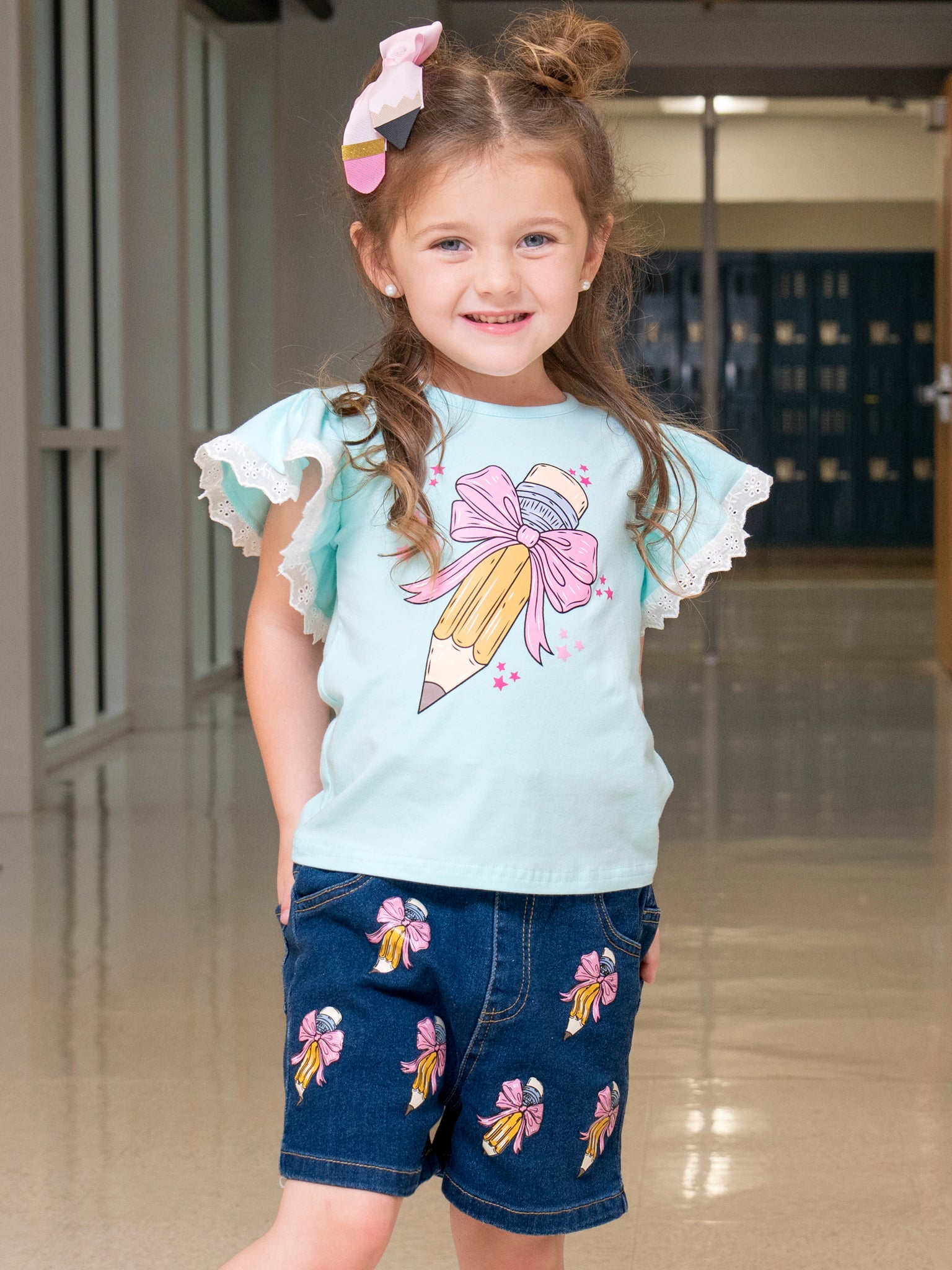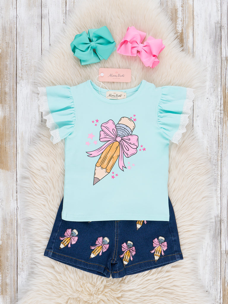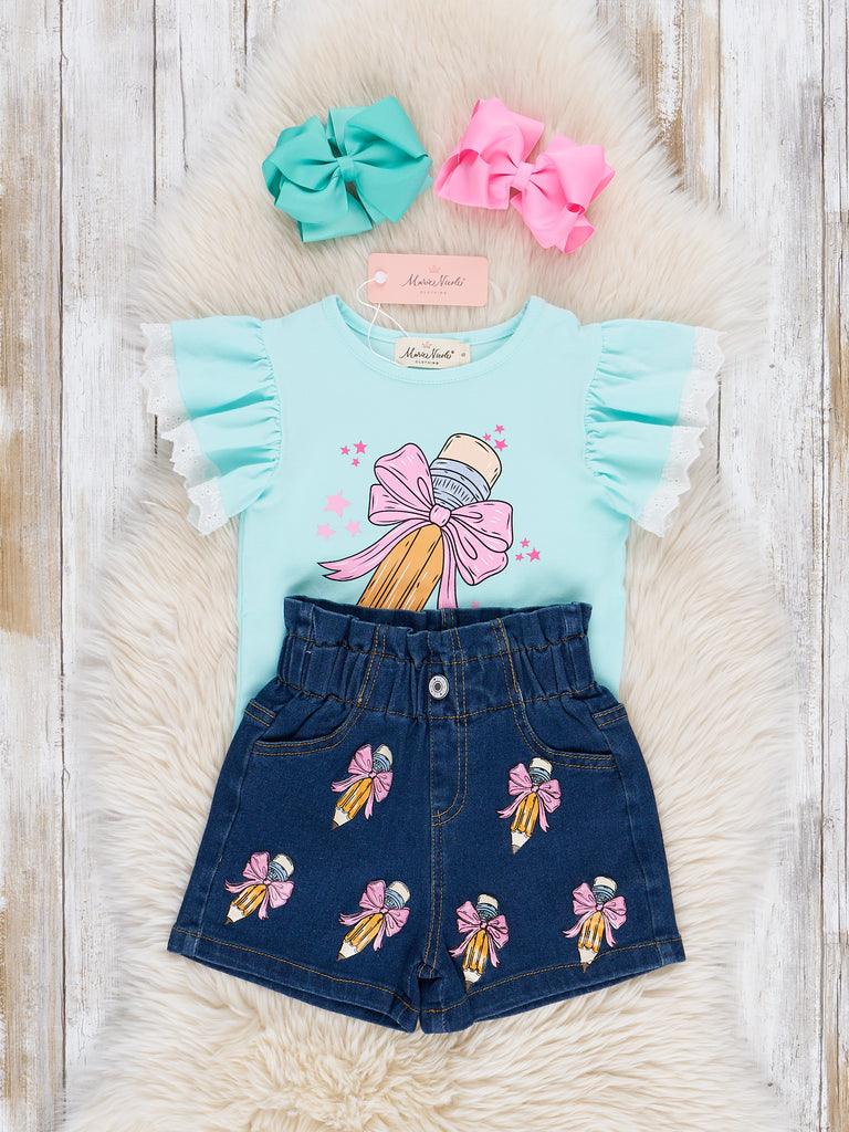 Pretty Bows Pencils Denim Outfit