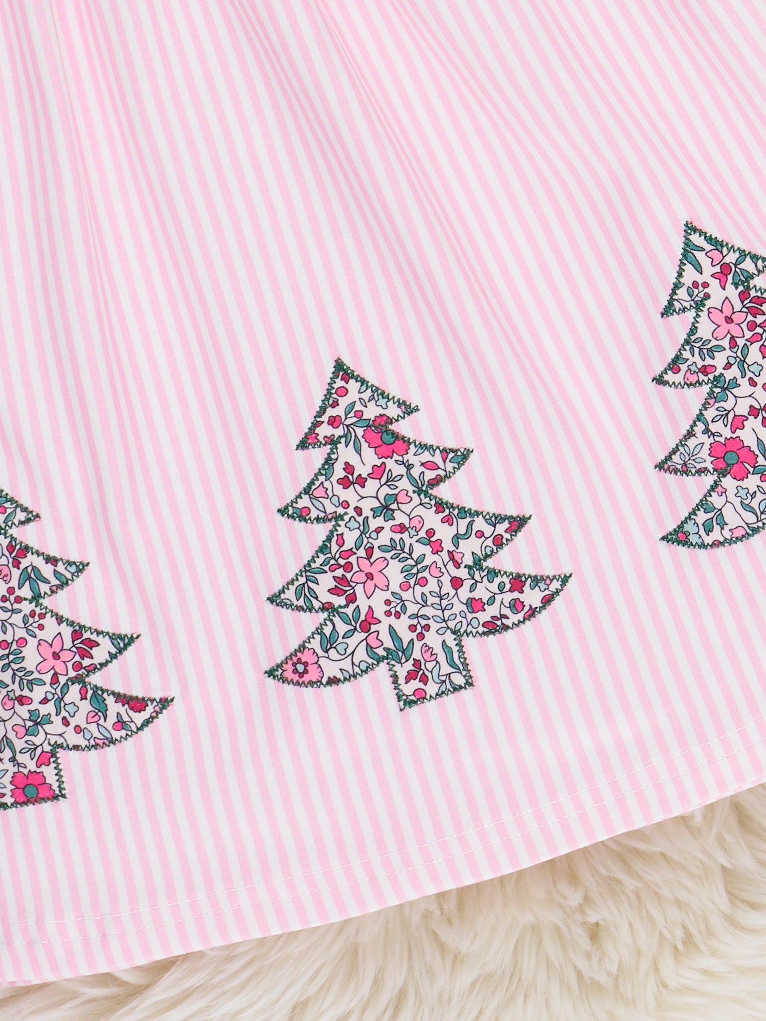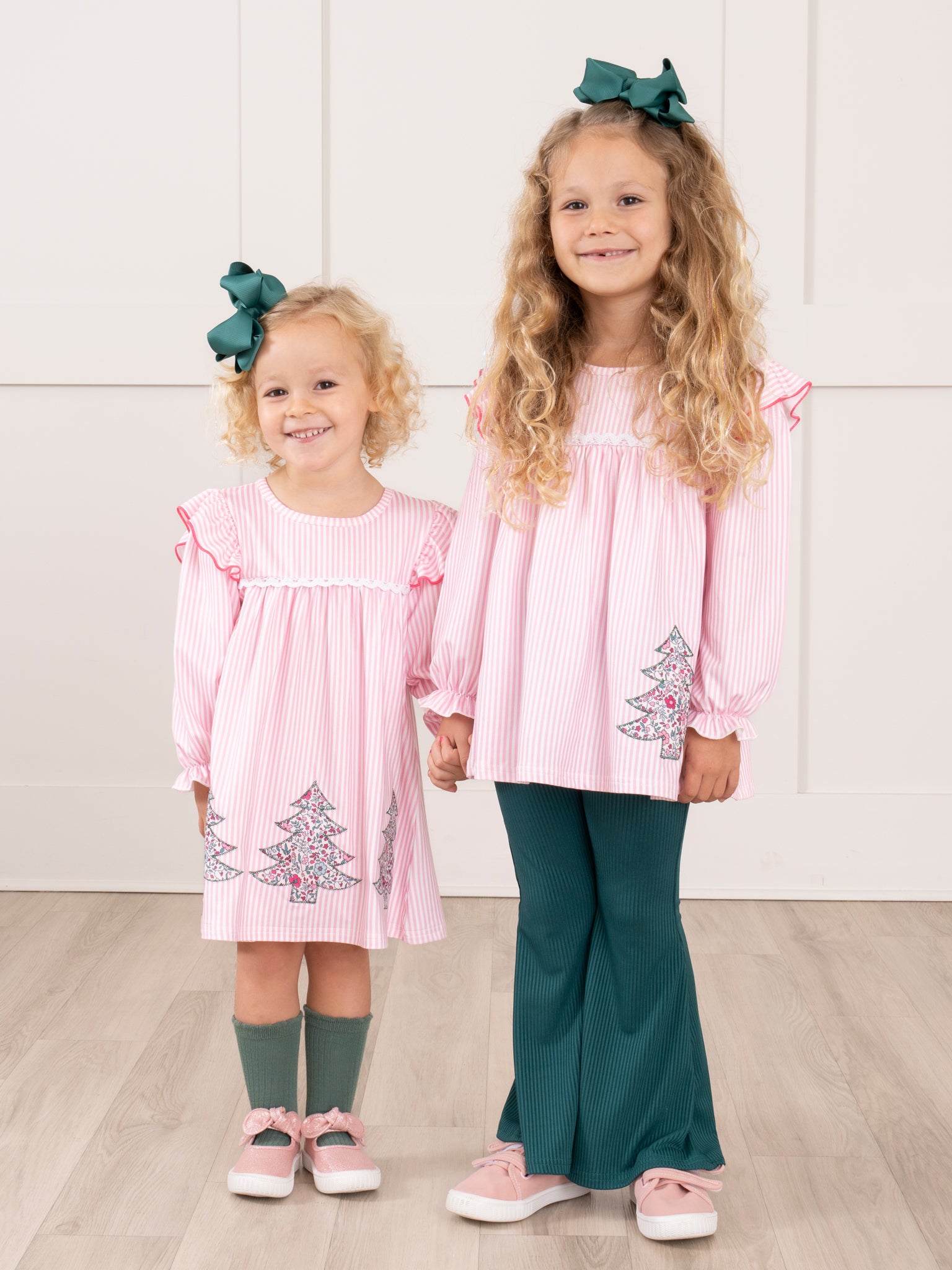 Sleigh this holiday season with our Christmas Forest Journey Ruffle Dress! The ruffle bodice adds a touch of sweetness to the embroidered floral Christmas tree design. Don't forget to grab the matching set for sisters! Sleigh all day!