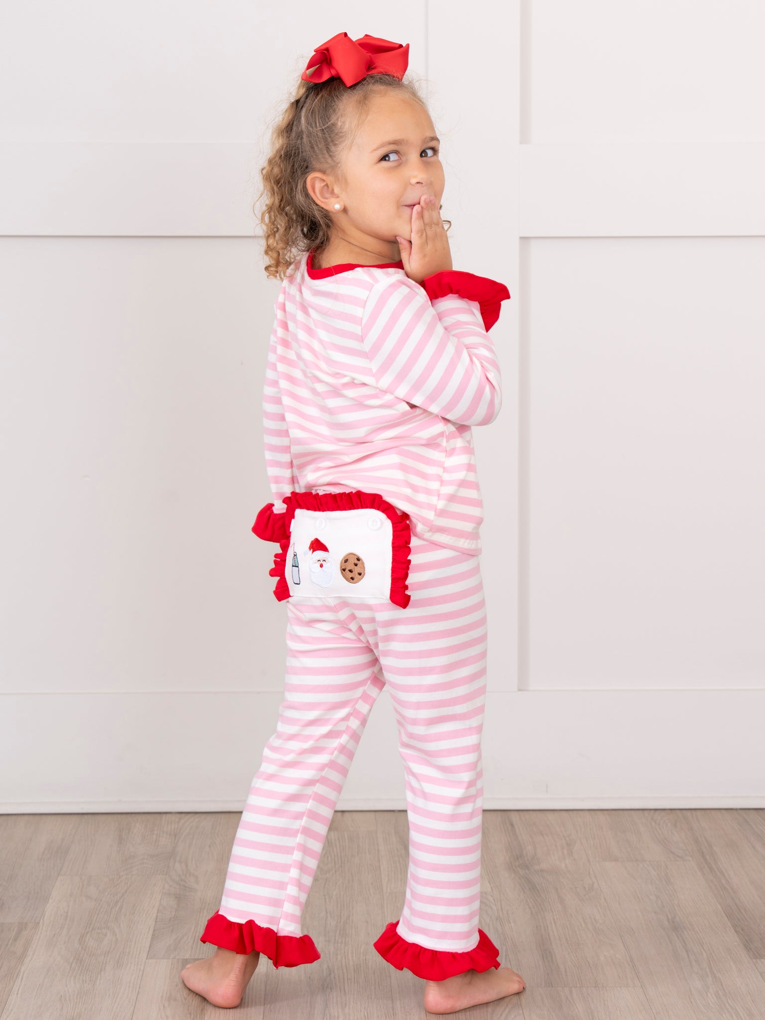 Get your little ones ready for a cozy and whimsical holiday season with our Santa Treat Time Embroidered Pajamas. These girls pajamas feature playful stripes and a festive trim. The asymmetrical zipper closure adds a touch of uniqueness, while the Santa cookies butt flap brings a dose of humor. (Don't worry--it doesn't actually open.) Don't forget to grab the matching sister set for double the fun!