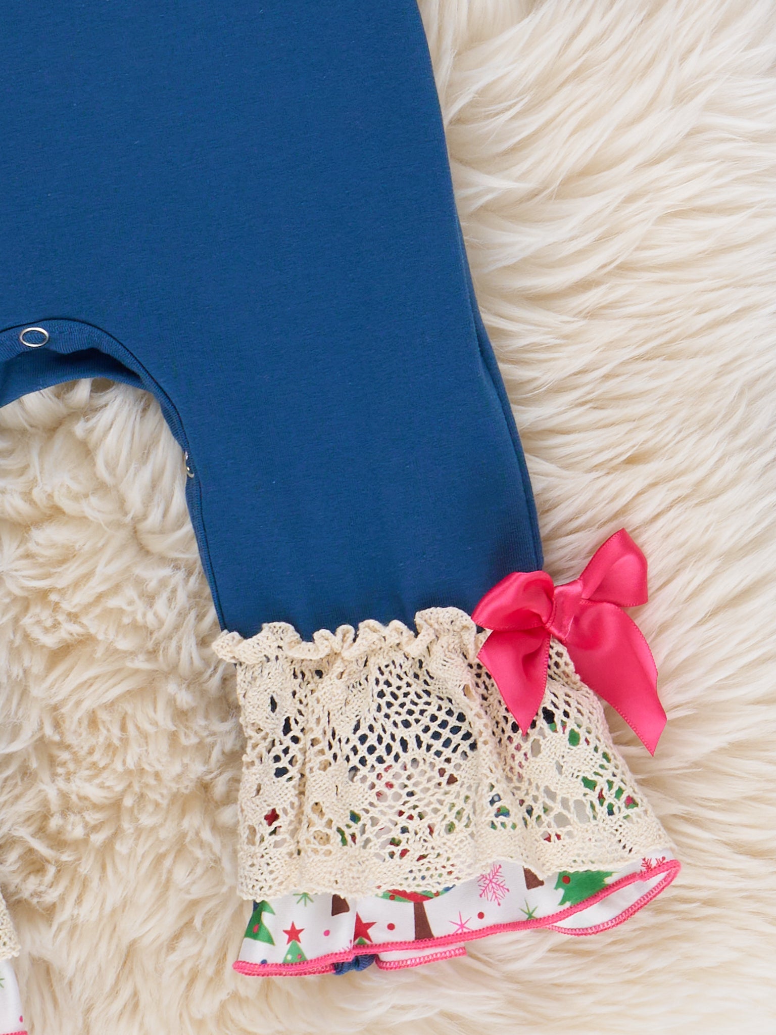 Get ready to sleigh the holiday season with our Around the Christmas Tree Lace Ruffle Romper! This adorable romper features a bodice with an embroidered tree and a playful ruffle hem. Double the fun with the matching sister set!