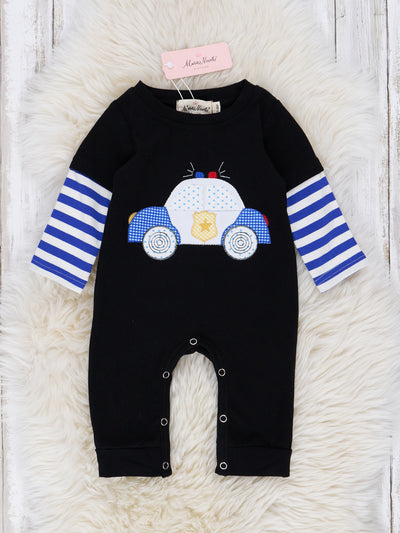 Get your family ready for a day of police patrol with this adorably stylish Black & Blue Stripe Little Cop Romper! This sibling set is perfect for any little cop-in-training, featuring a car detail that'll have 'em feeling like a real officer of the law. Excuse us, did someone say "Blues Brothers"? Who's ready to take on the day?