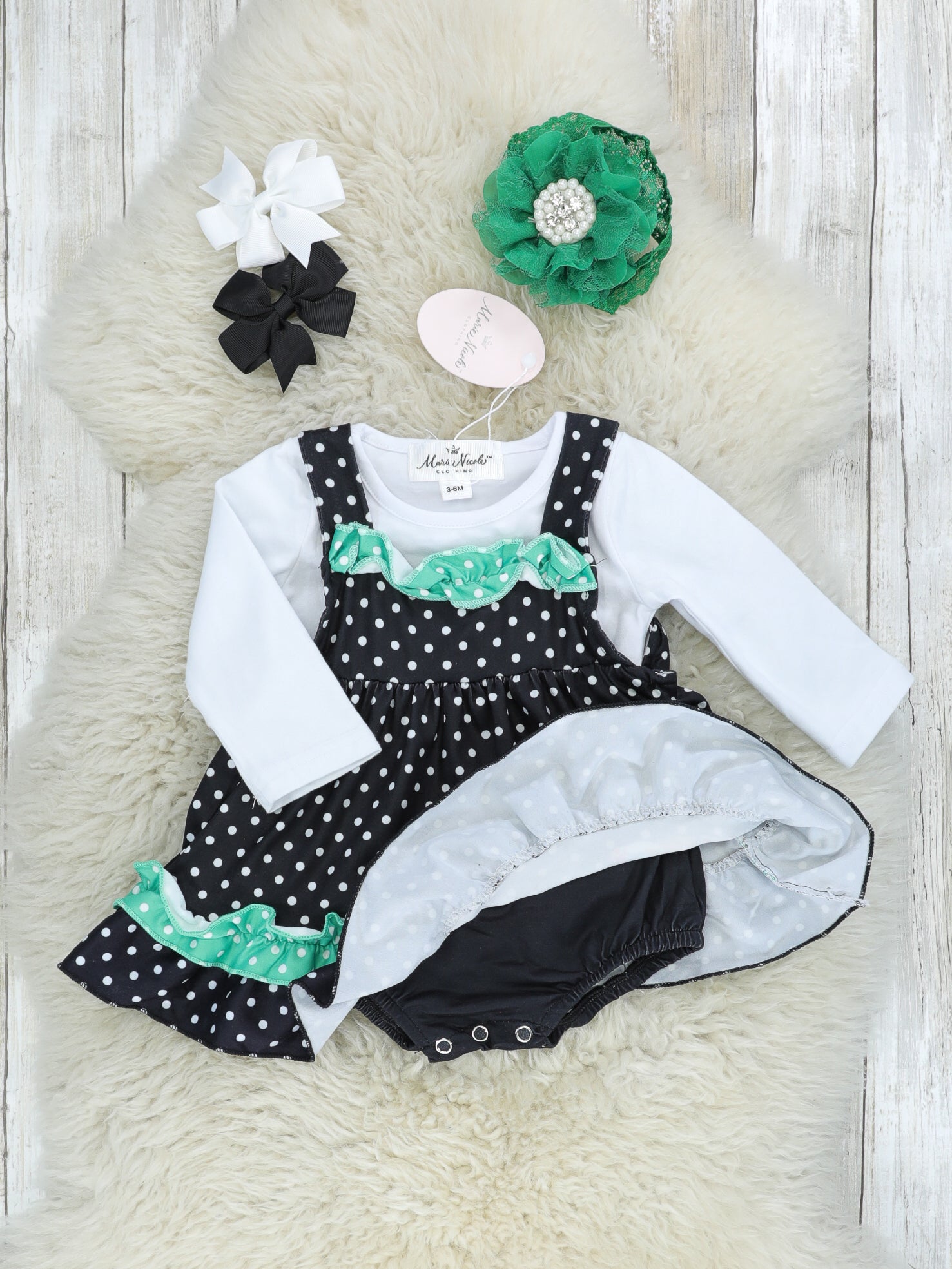Black Polka Dot Gingerbread Romper W/ White Shirt