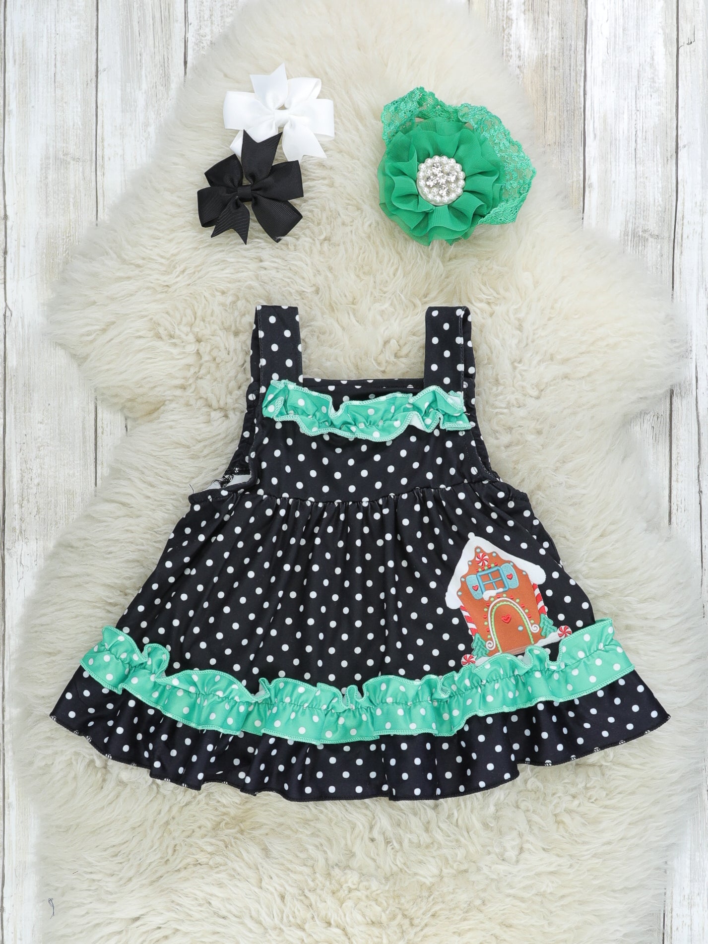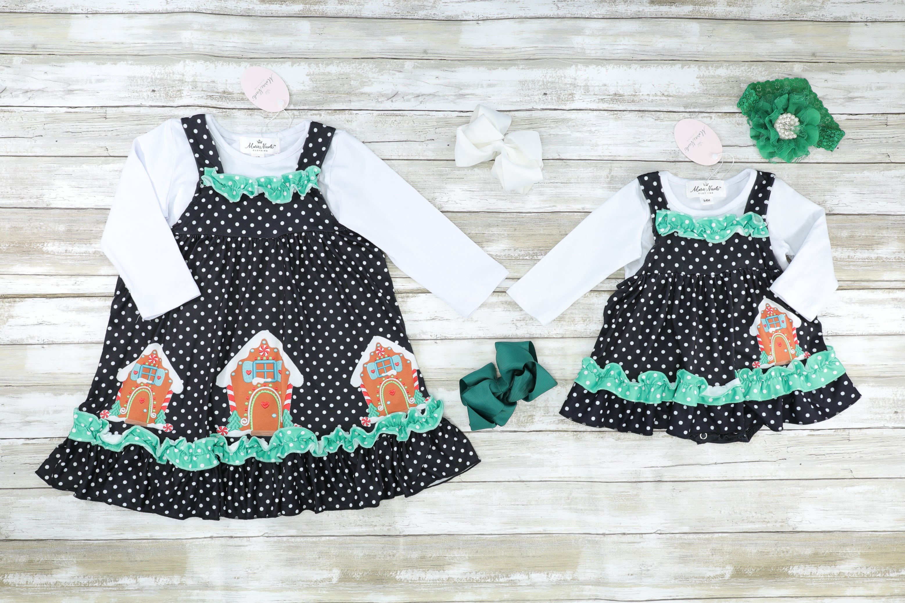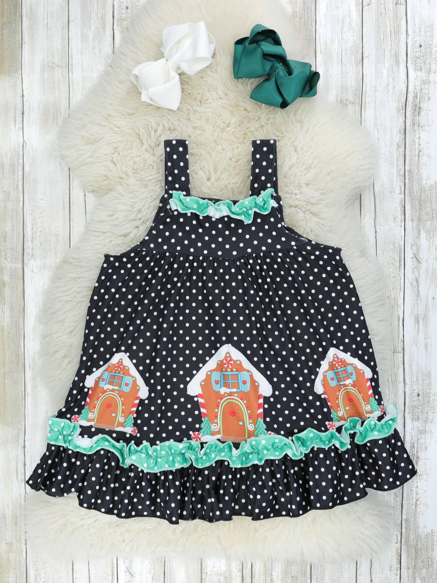 Black Polka Dot Gingerbread Dress W/ White Shirt