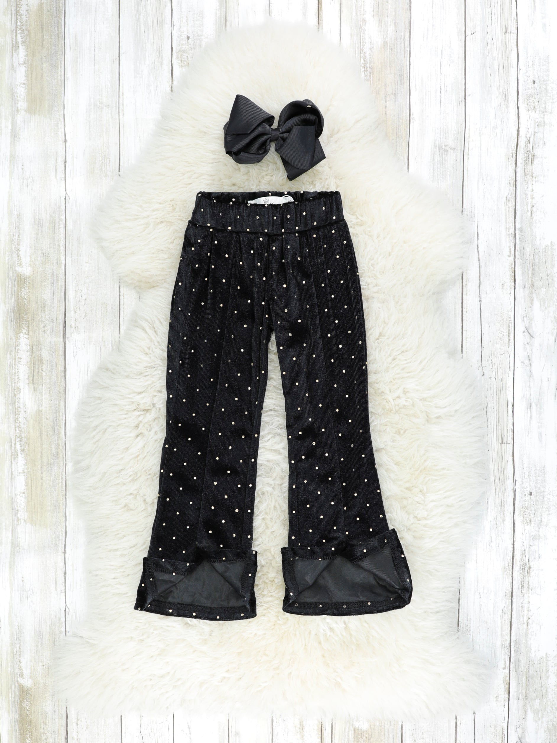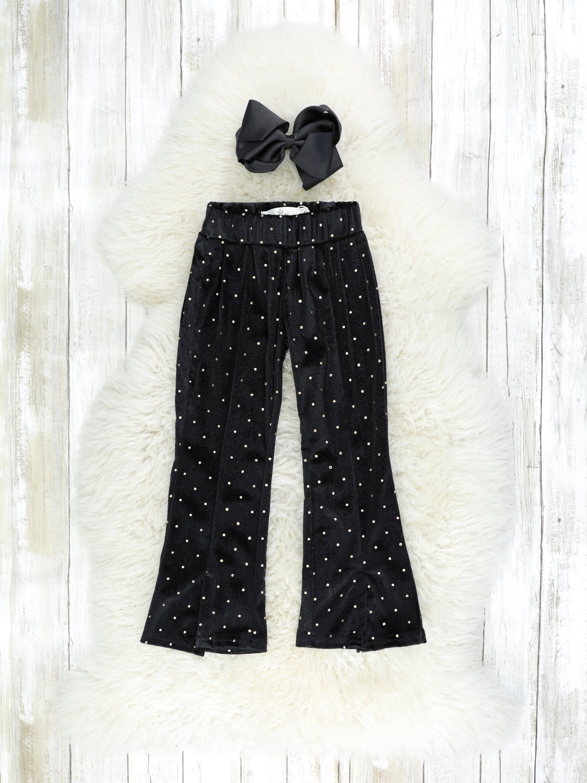 Black Polka Dotted Split Hem Velvet Bell Bottoms