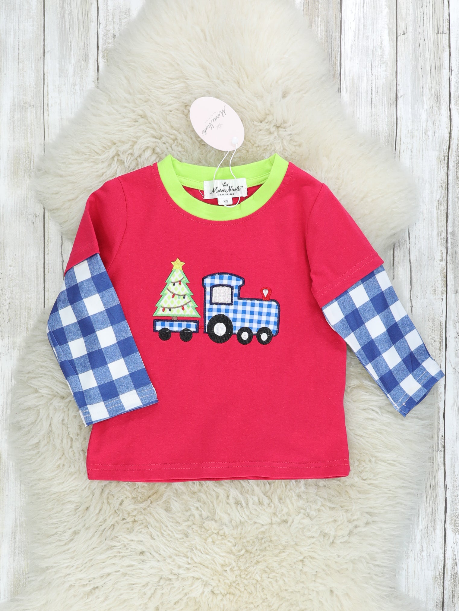 Blue Gingham Christmas Tree Truck Layered Shirt