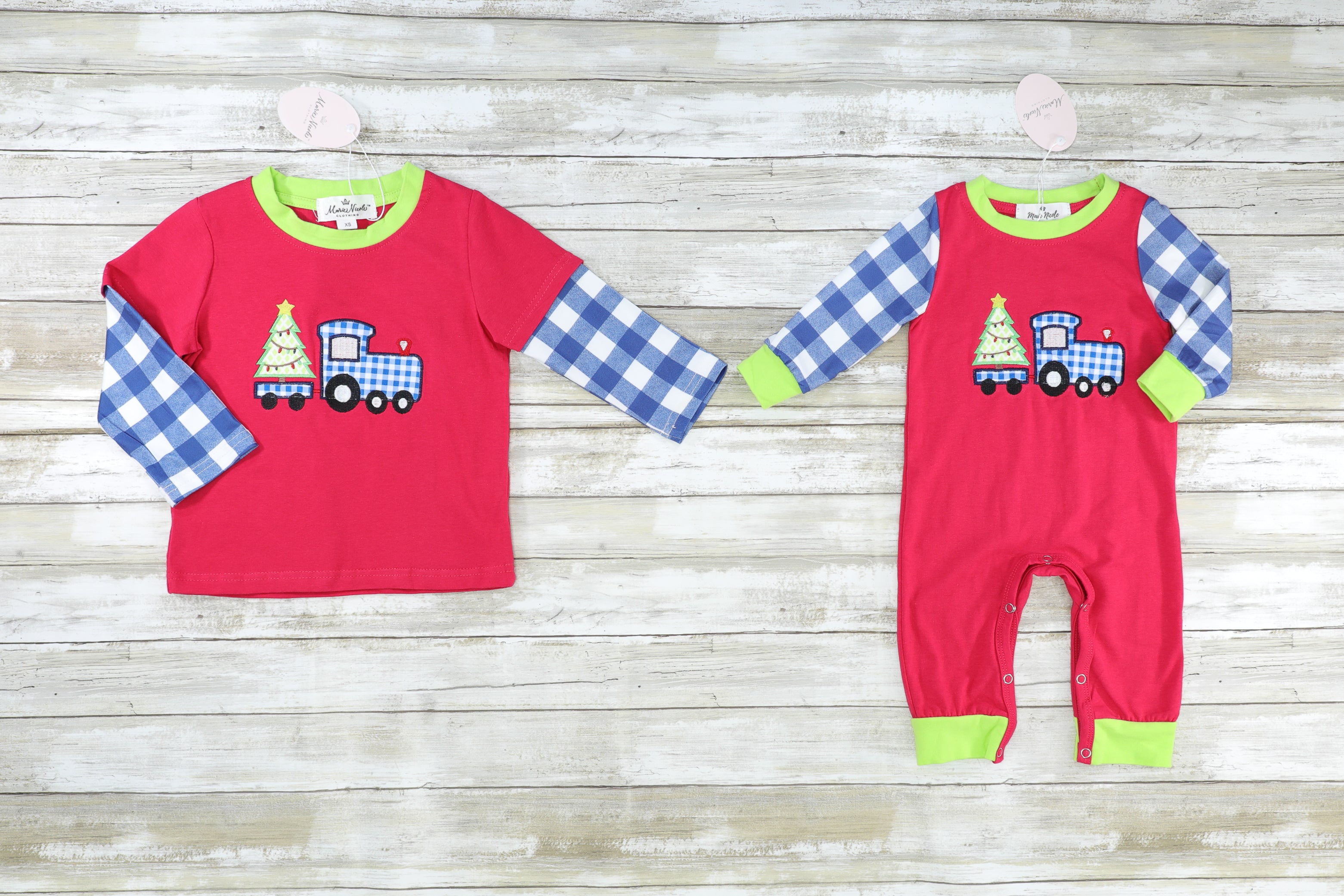 Home › Blue Gingham Christmas Tree Truck Brother Set