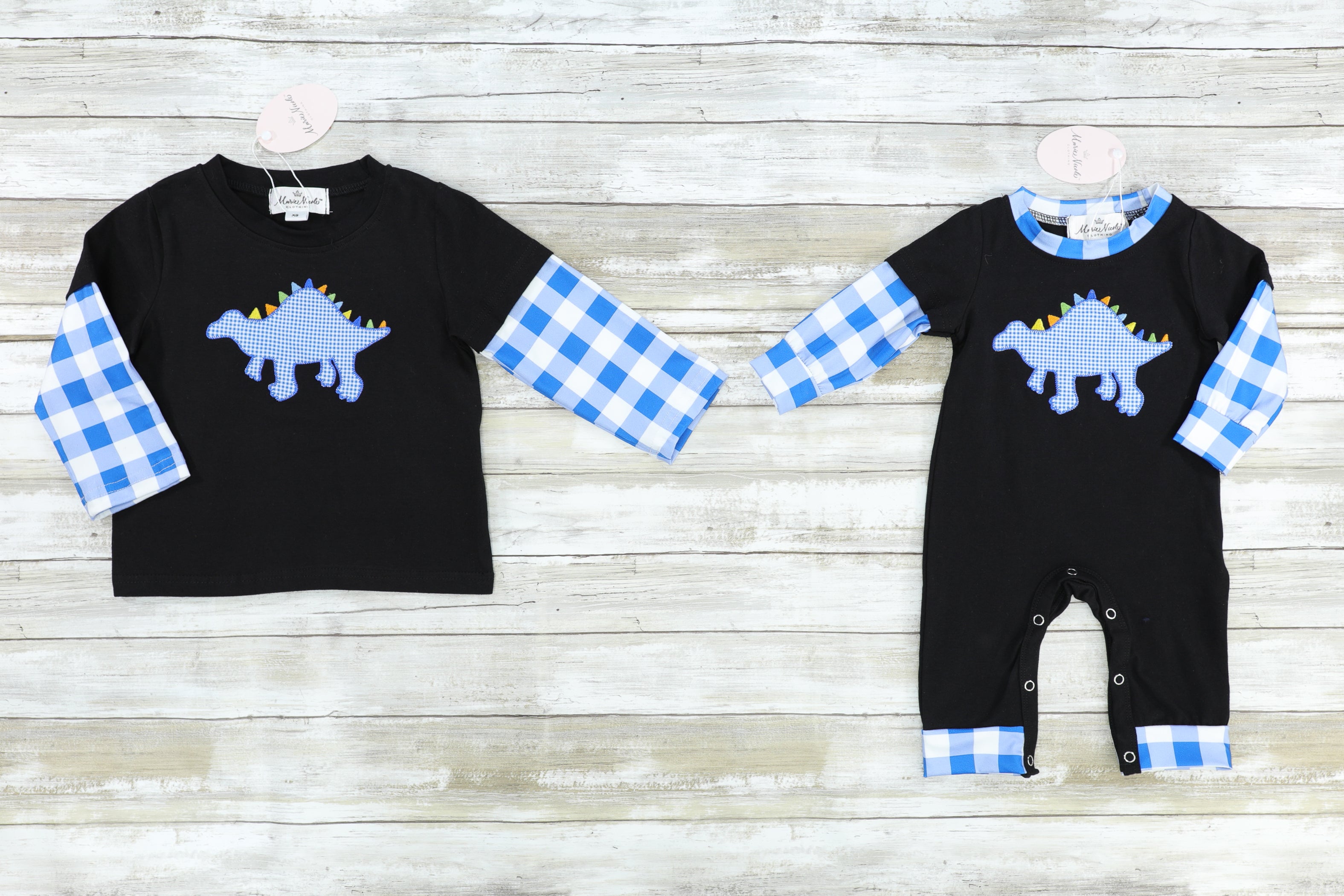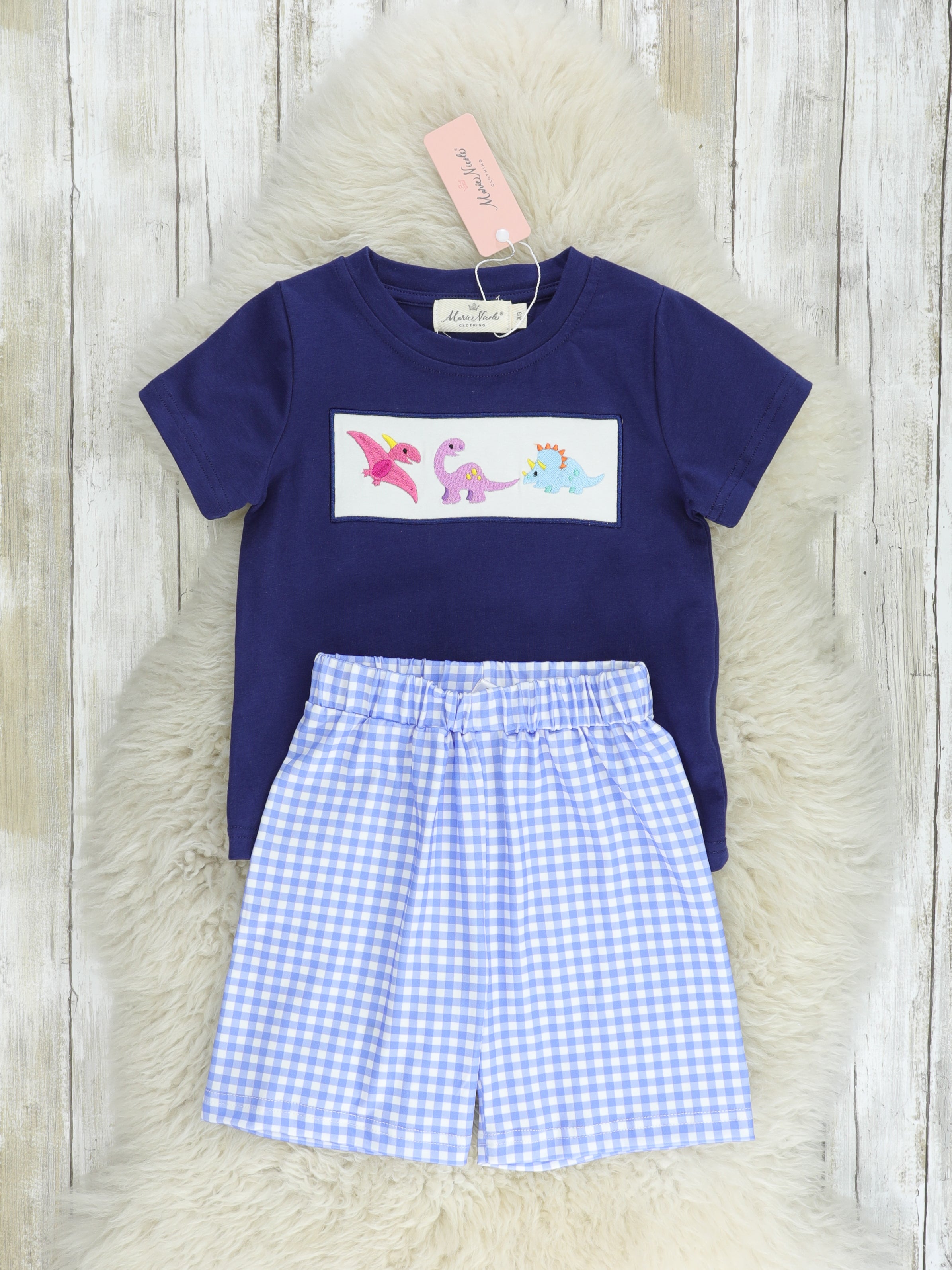 Home › Blue Gingham Dinosaur Brother Set