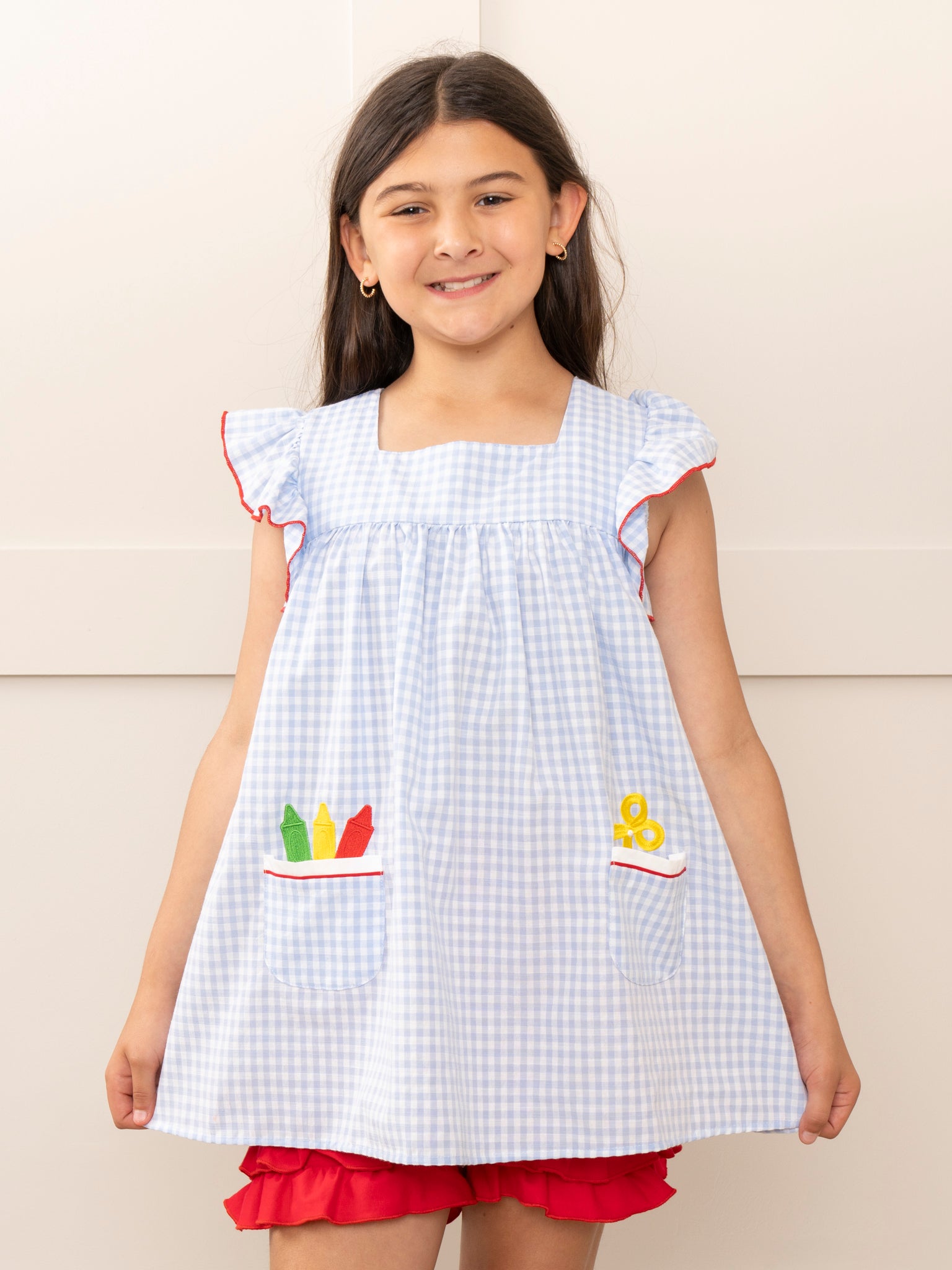 Home › Blue Gingham Embroidered Crayons Sister Set