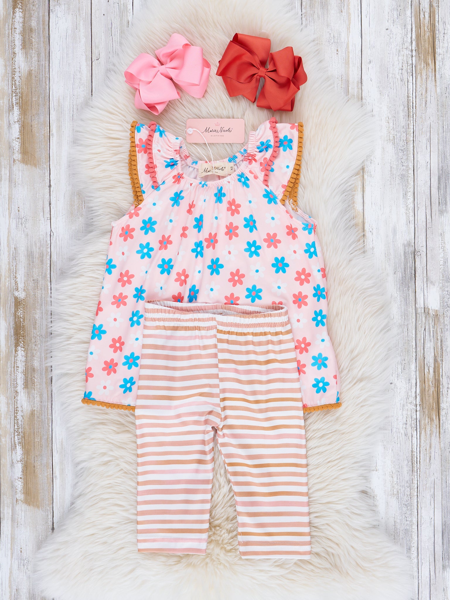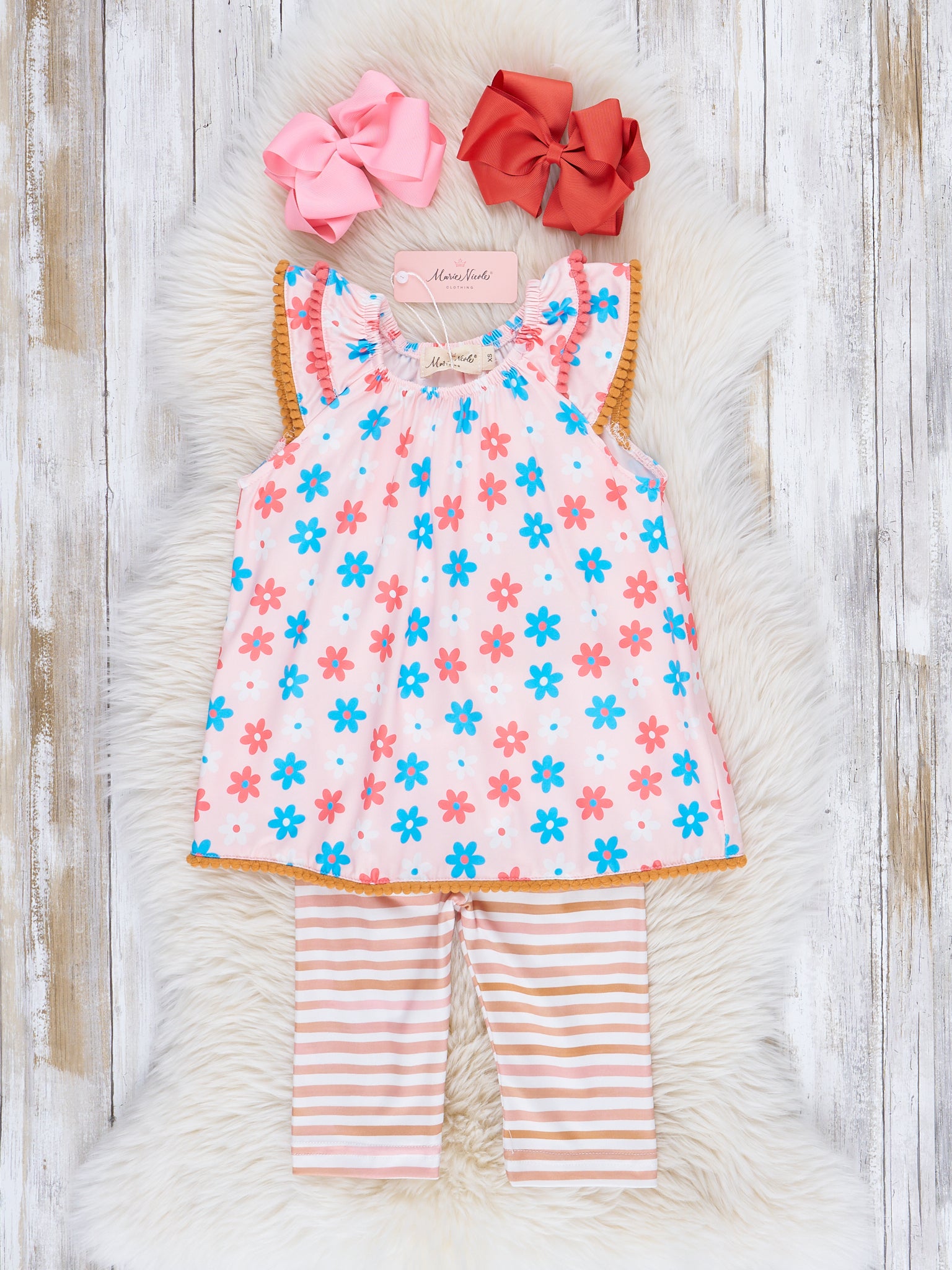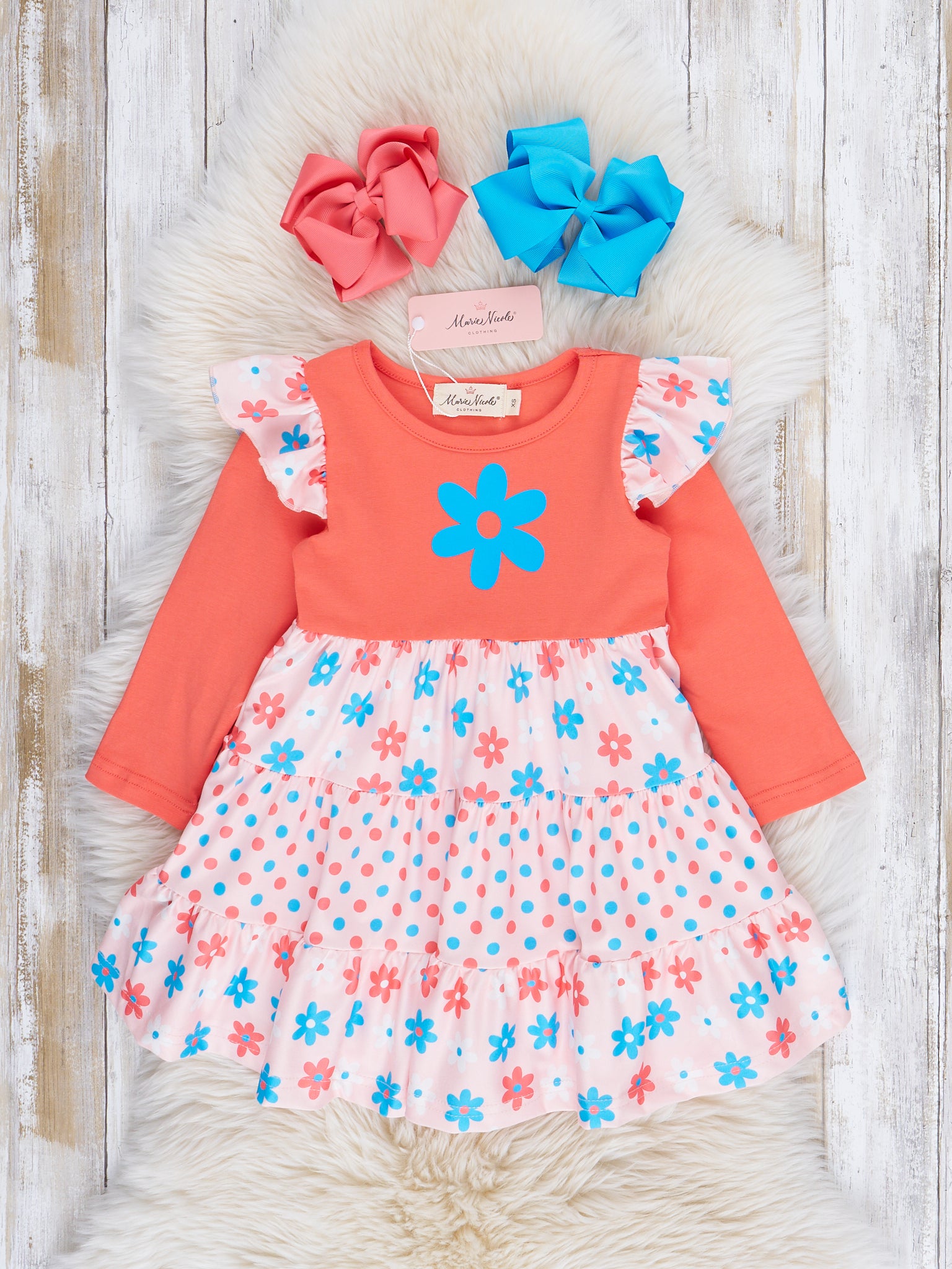 Home › Blue & Orange Daisies Ruffle Sister Set