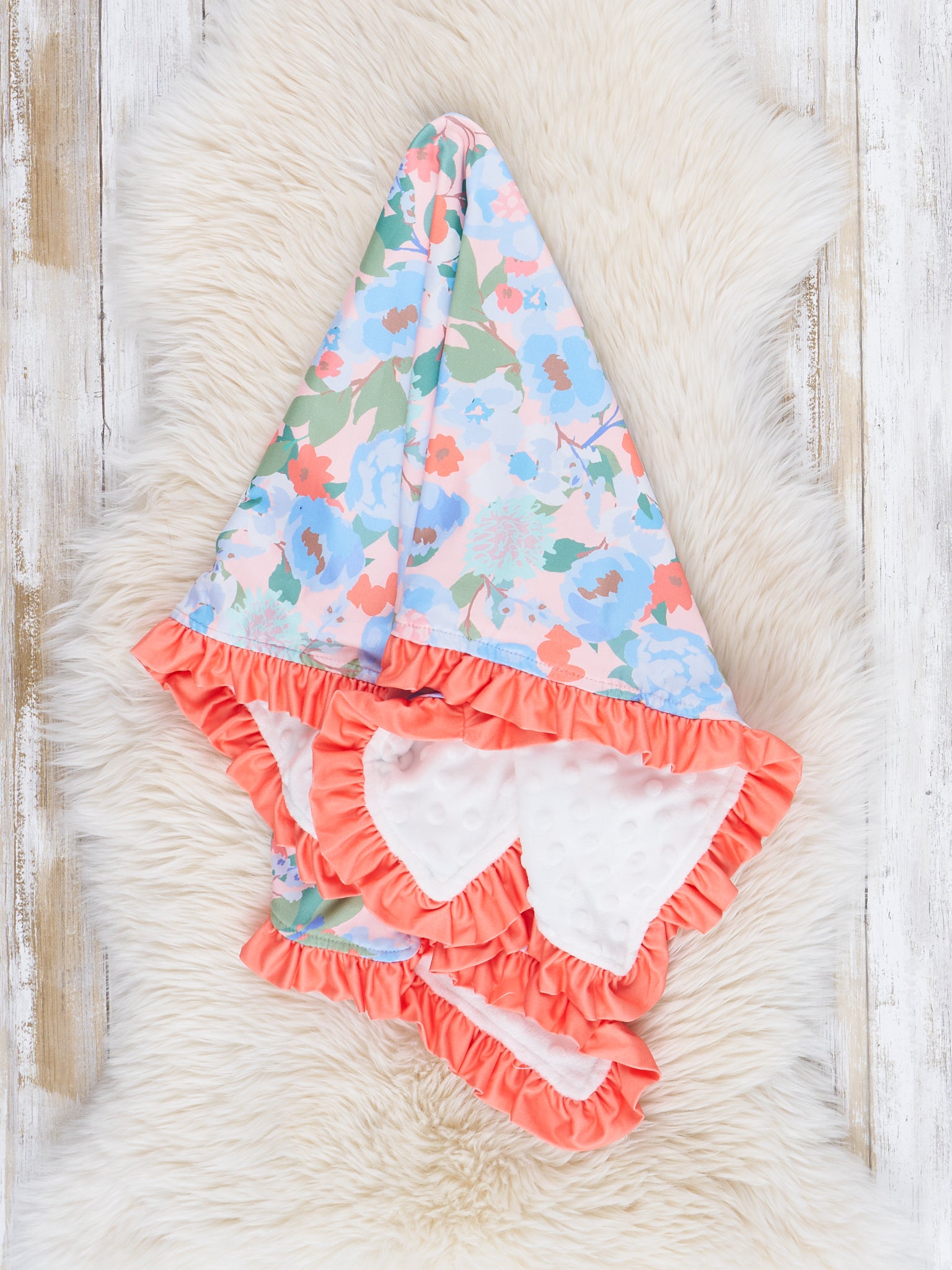 Blue & Orange Watercolor Garden Ruffle Minky Blanket