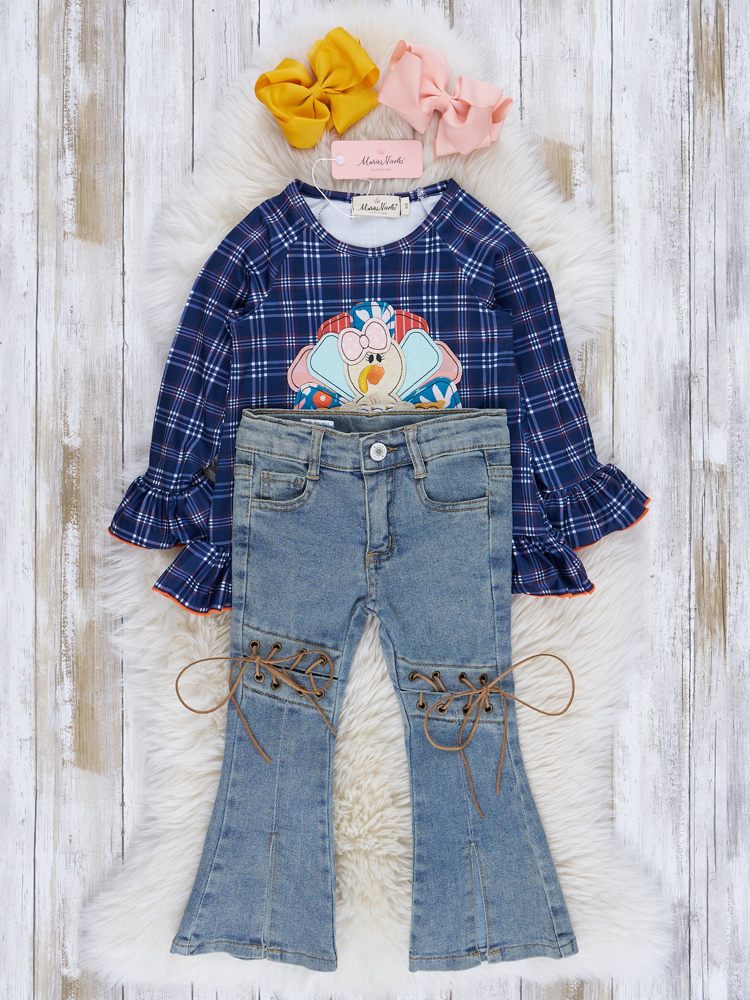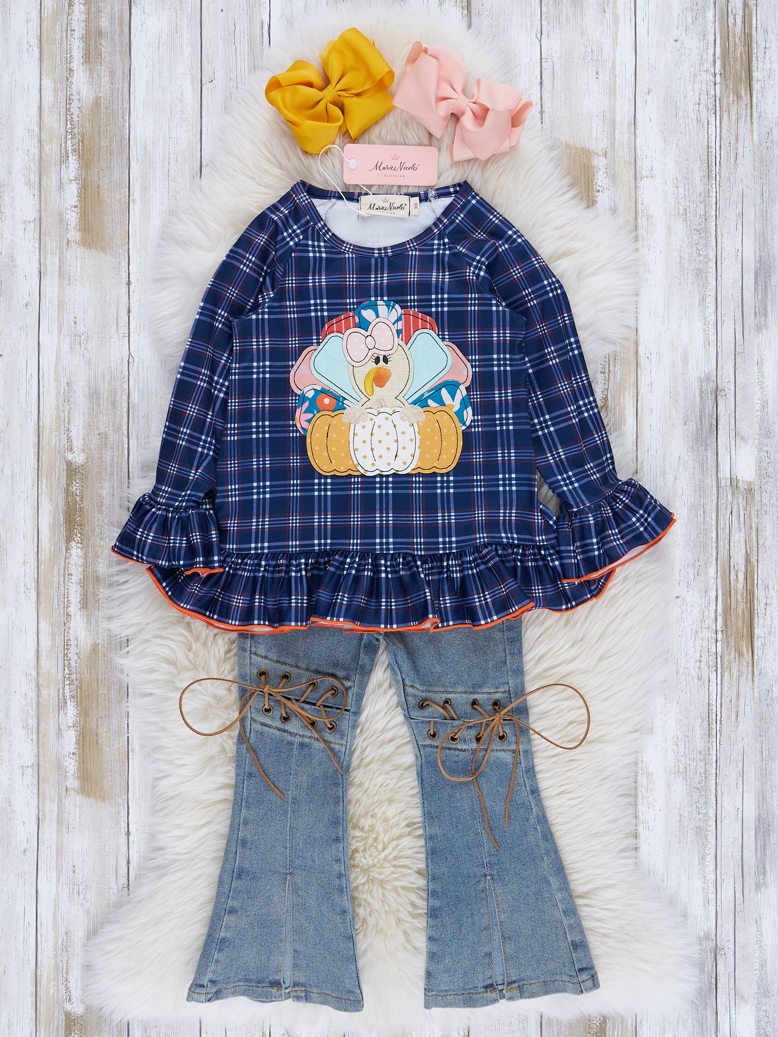 Blue & Orange Plaid Embroidered Turkey Outfit w/ Denim