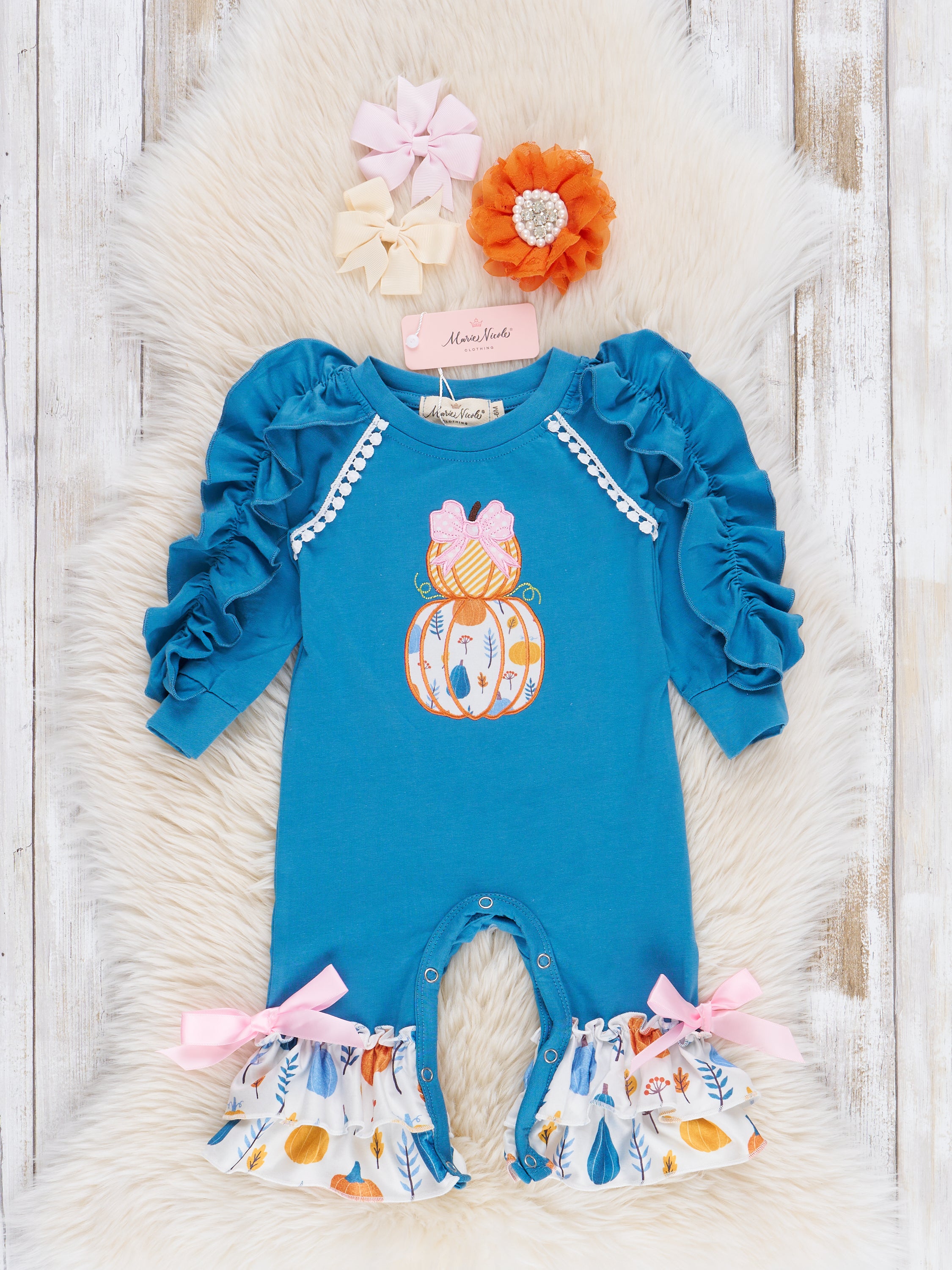 Blue & Pink Sweet Pumpkins Ruffle Romper