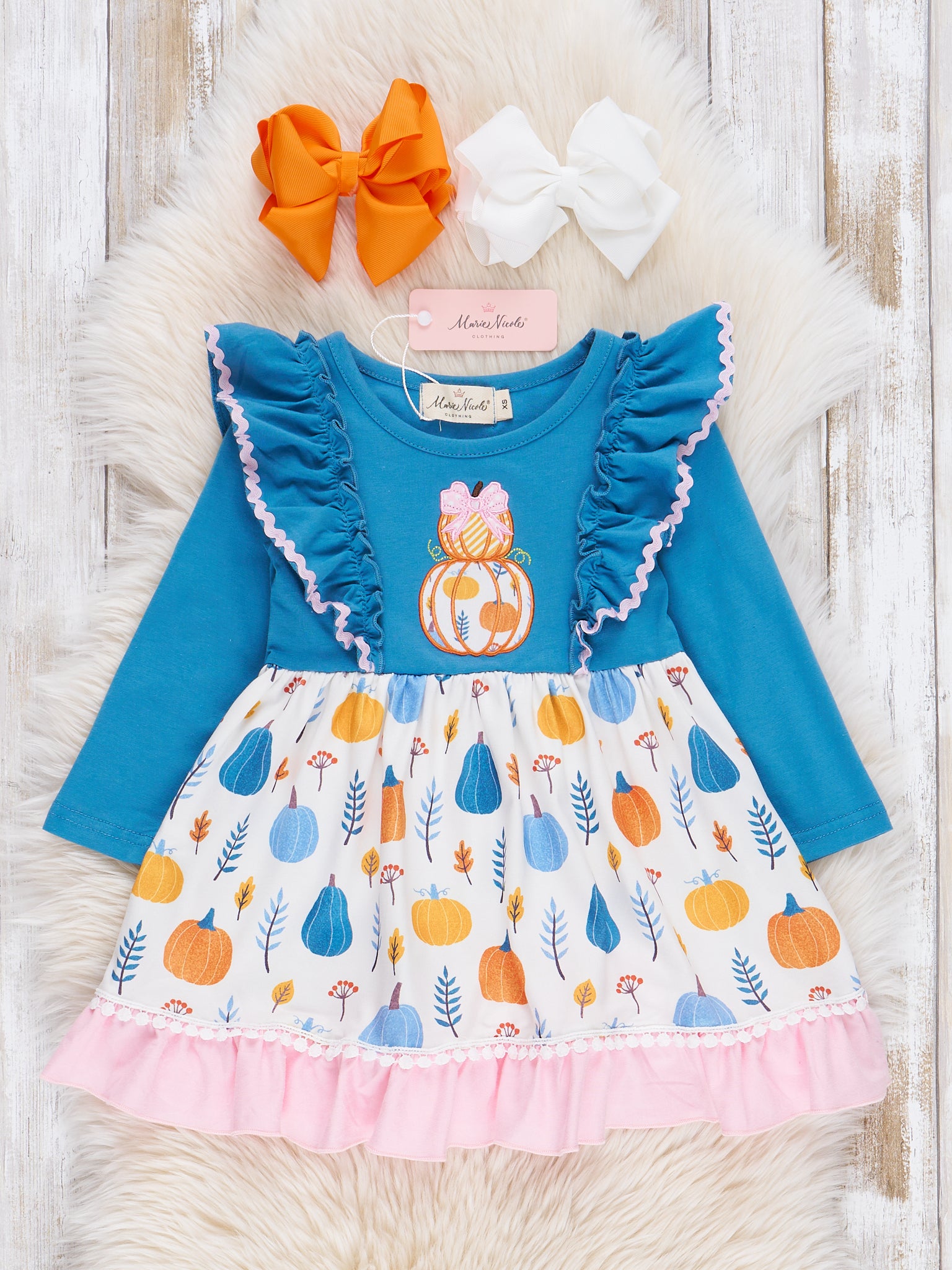 Blue & Pink Sweet Pumpkins Ruffle Dress