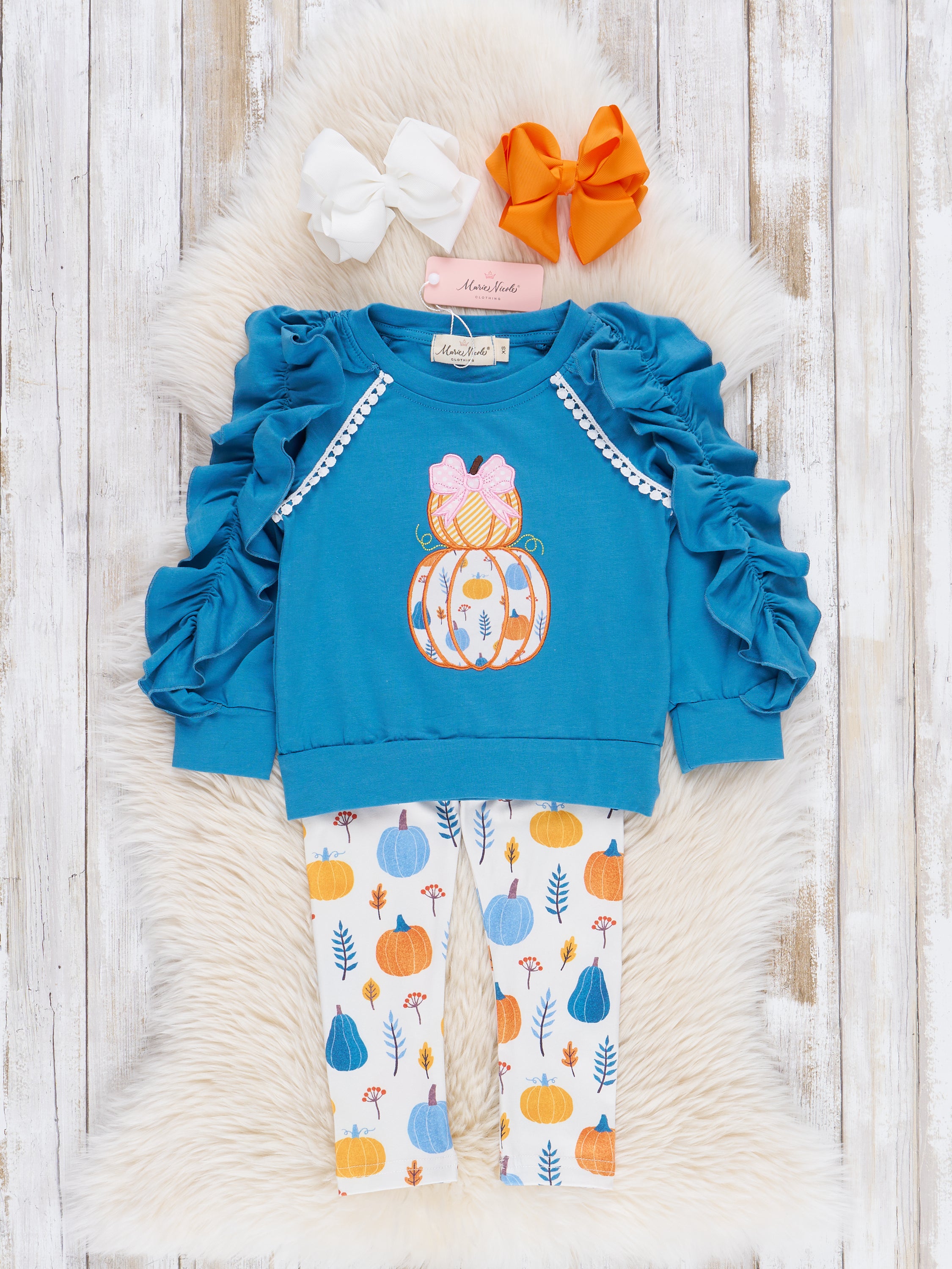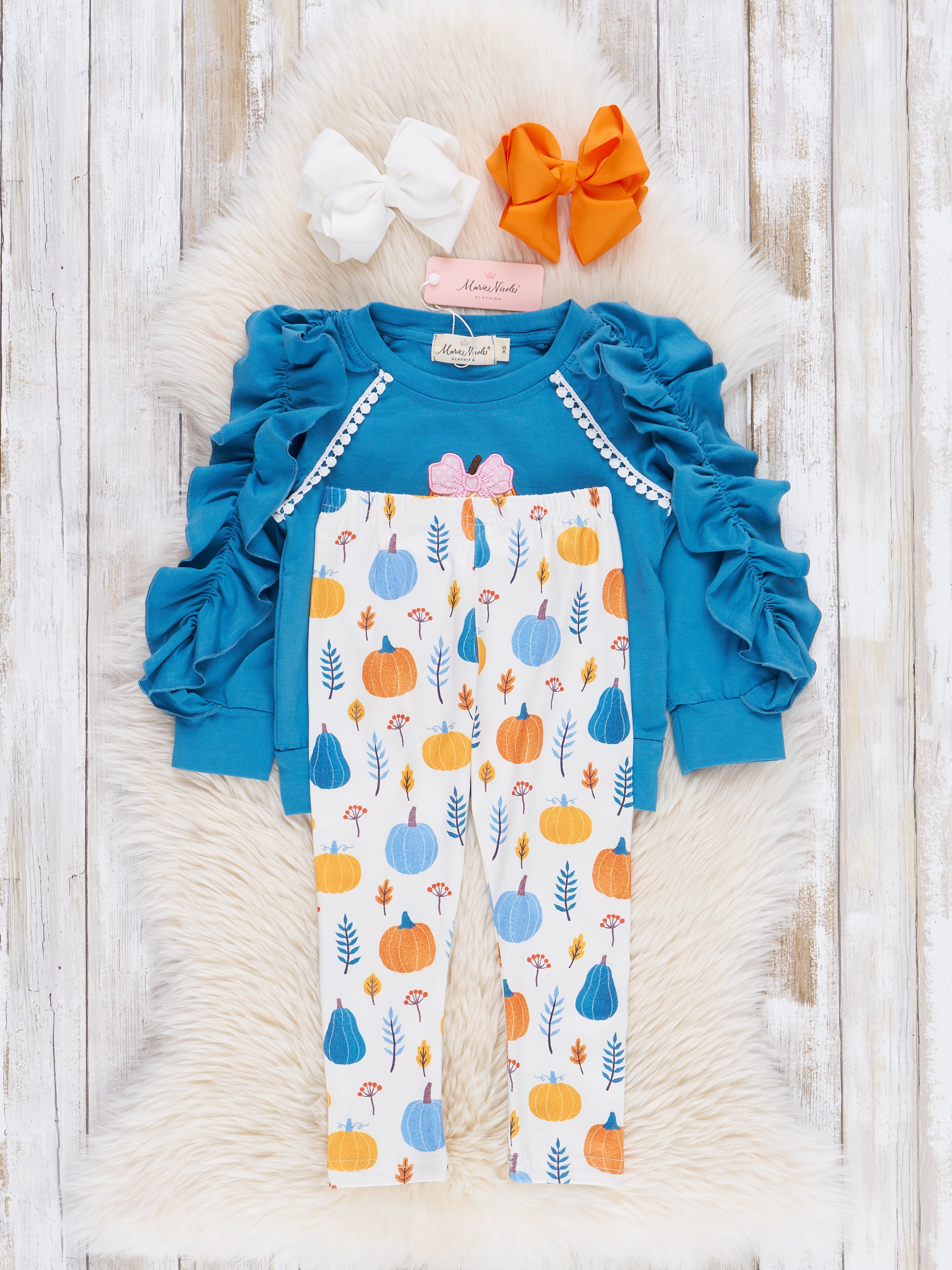 Blue & Pink Sweet Pumpkins Ruffle Outfit