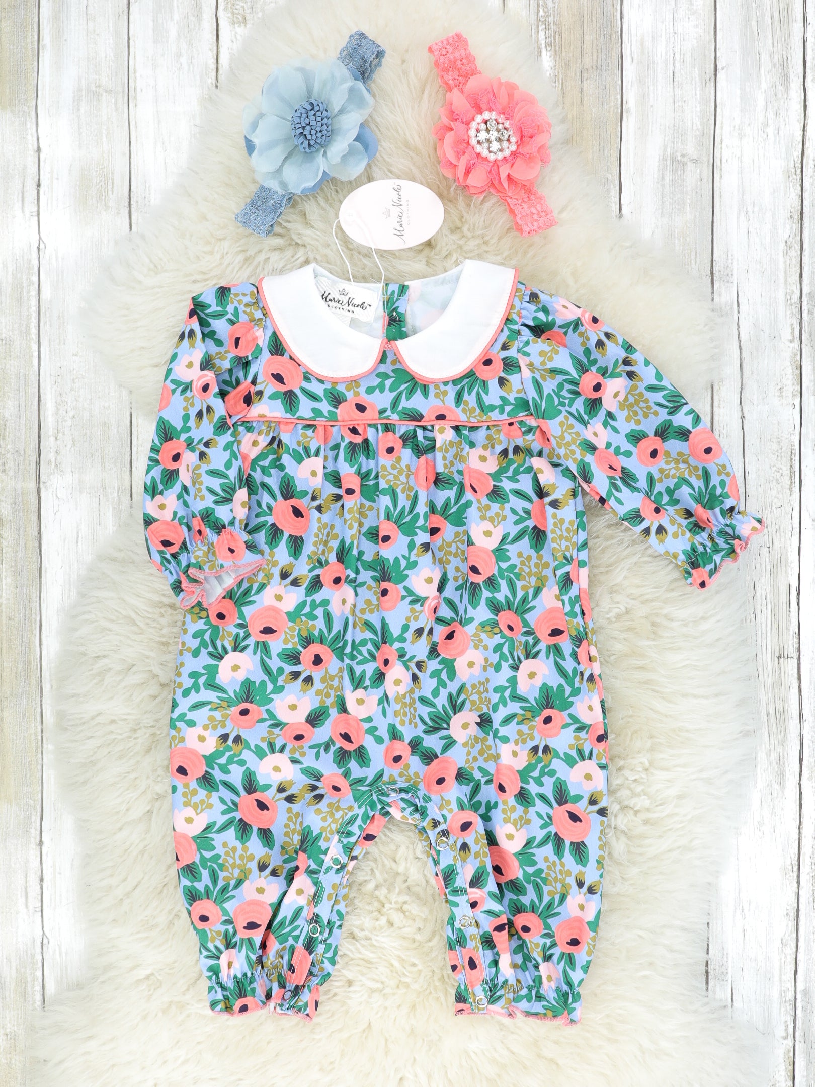 Blue & Pink Vintage Floral Romper