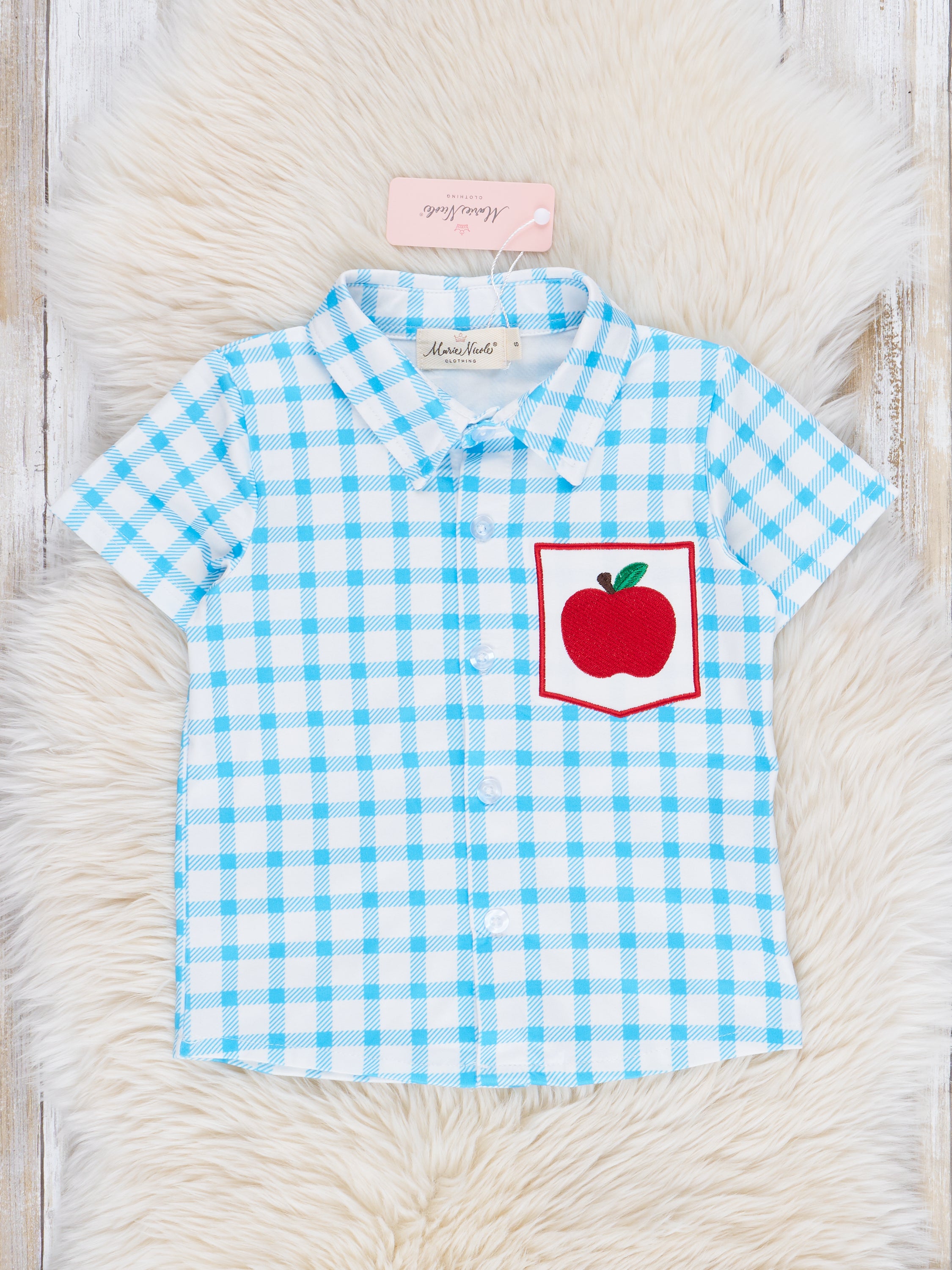 Home › Blue Plaid Embroidered Apple Sibling Set