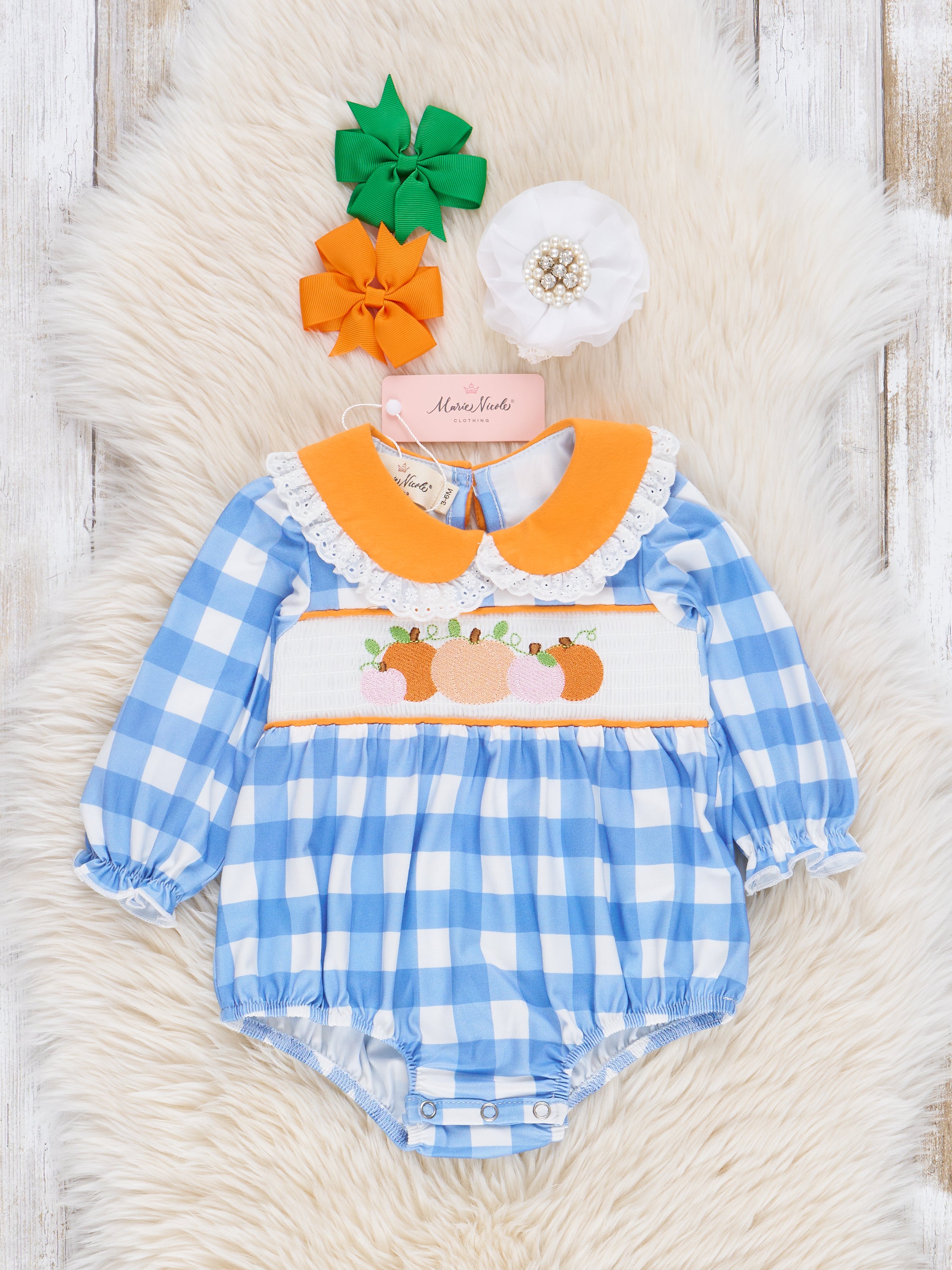 Blue Plaid & Pumpkin Smocked Outfit