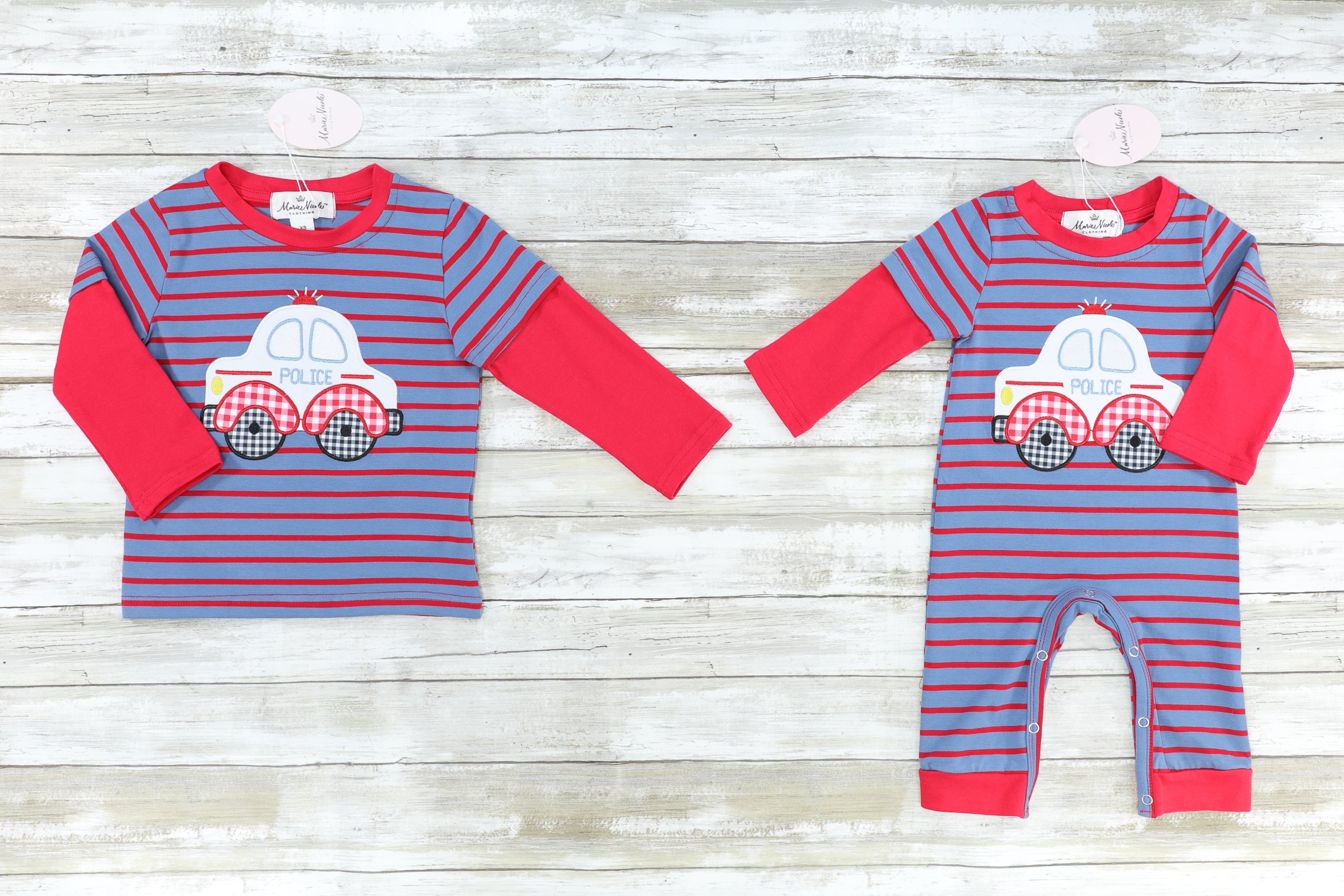 Blue & Red Striped Police Car Romper