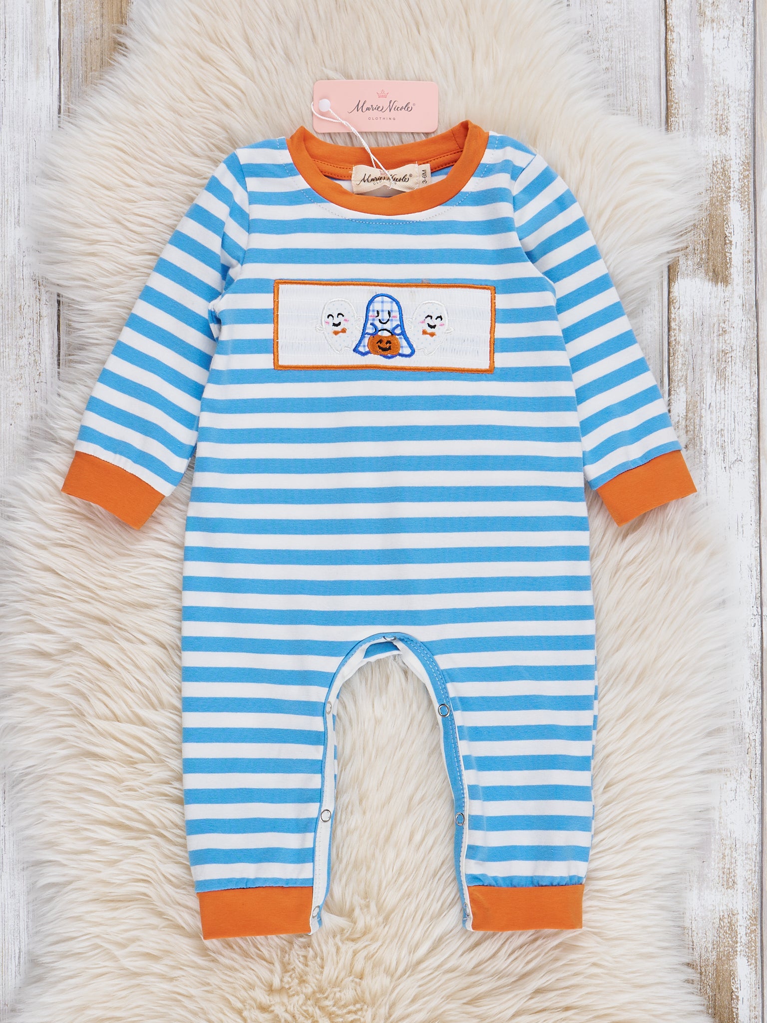 Blue Striped Ghost Friends Romper