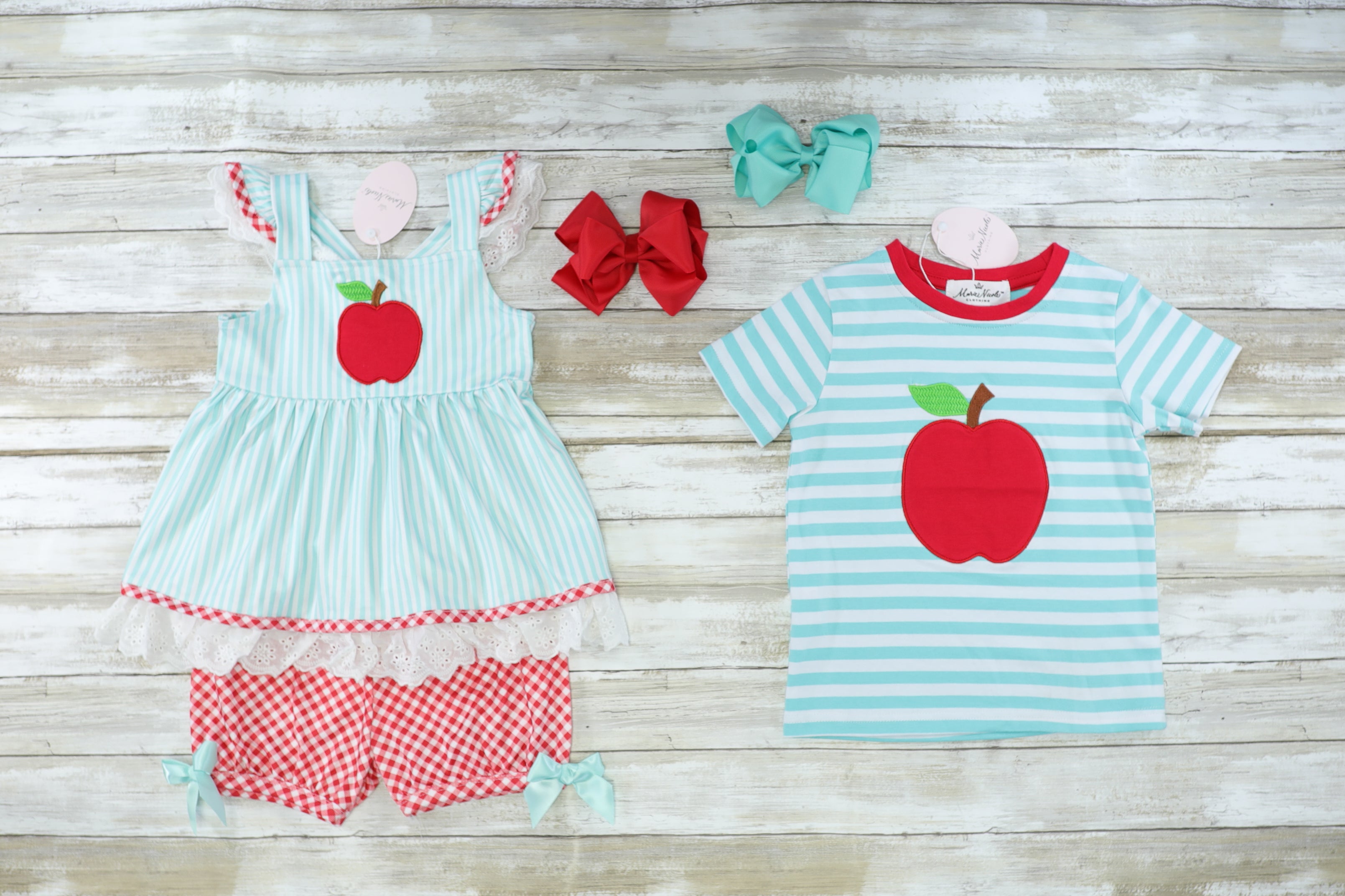 Home › Blue & White Striped Apple Sibling Set