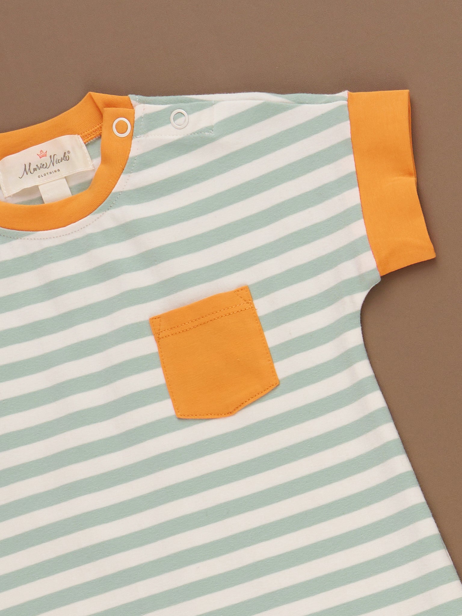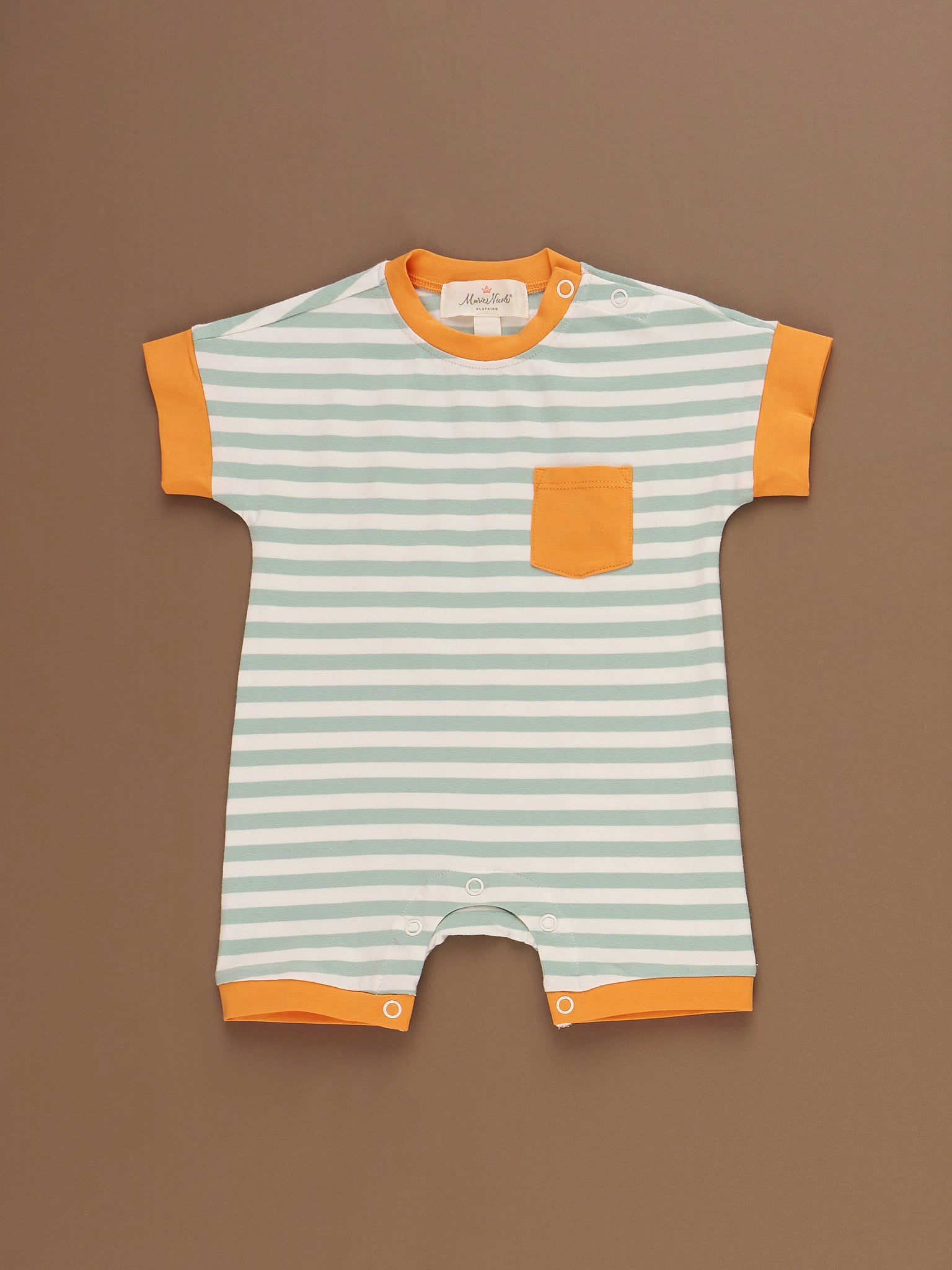 The Golden Hour Striped Romper features short sleeves, a chest pocket, and playful stripes. Watch the sunset in this cool one-piece!