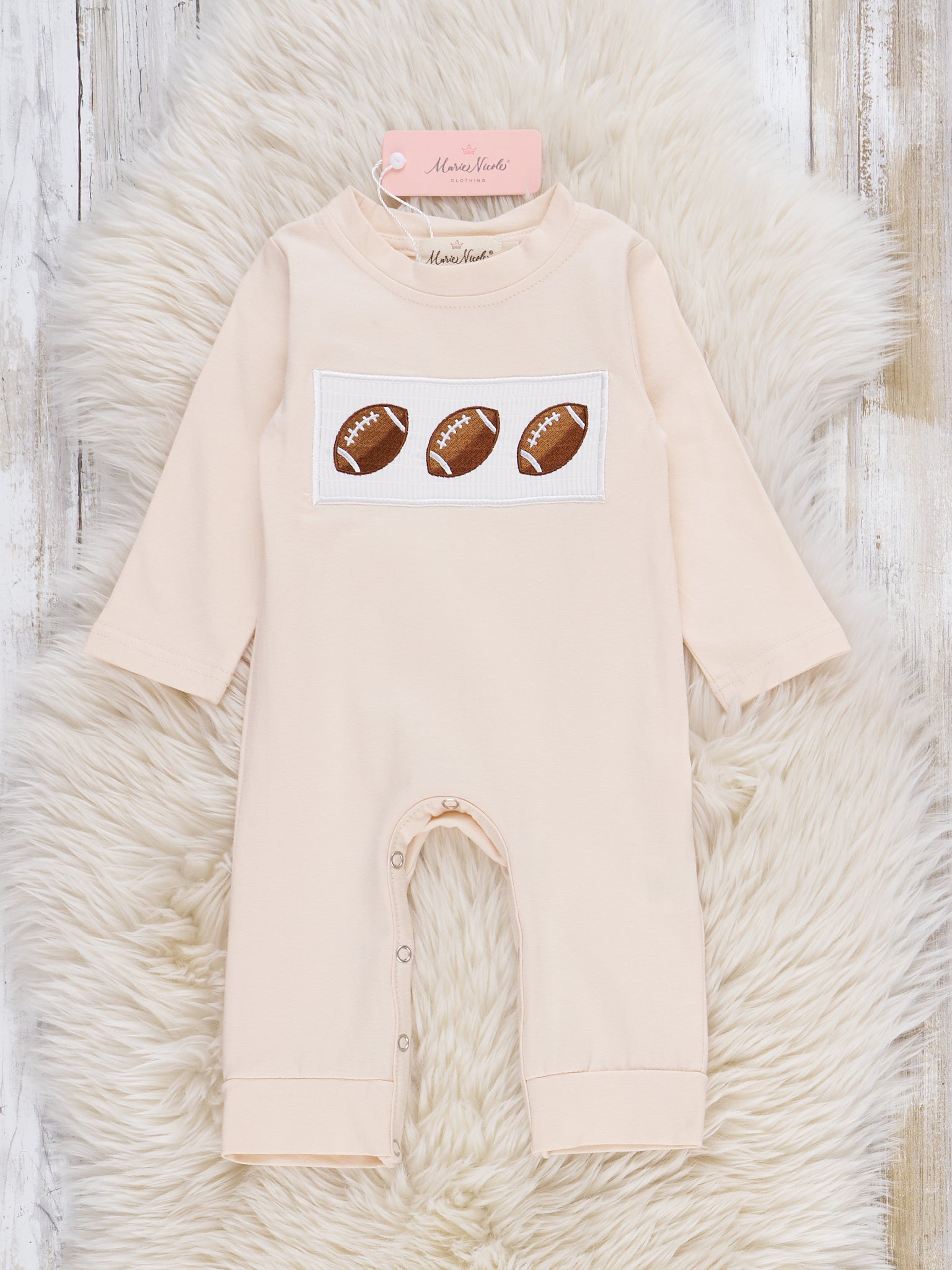 Tan Football Time Smocked Romper