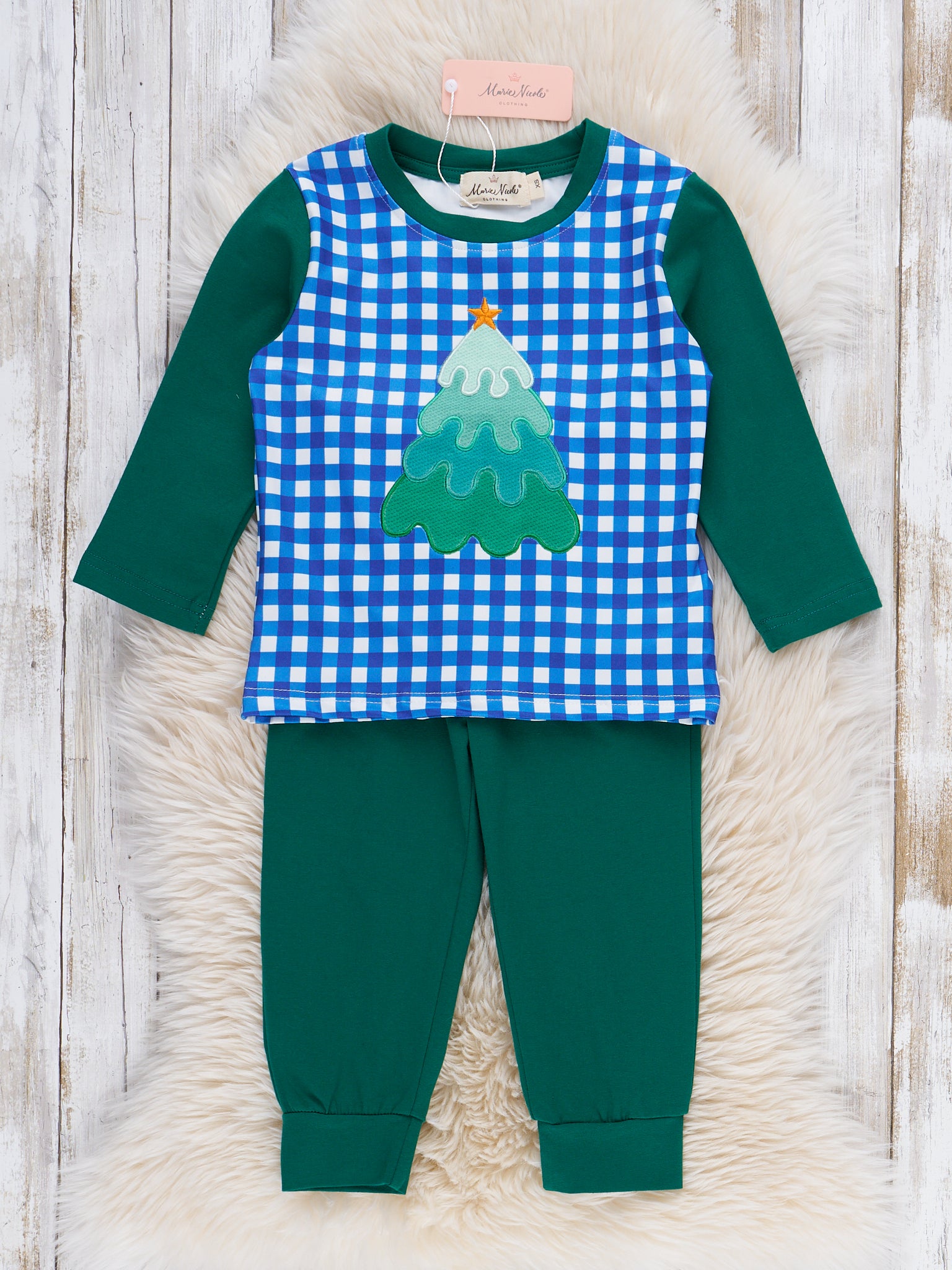 Checkered Holiday Tree Embroidered Outfit