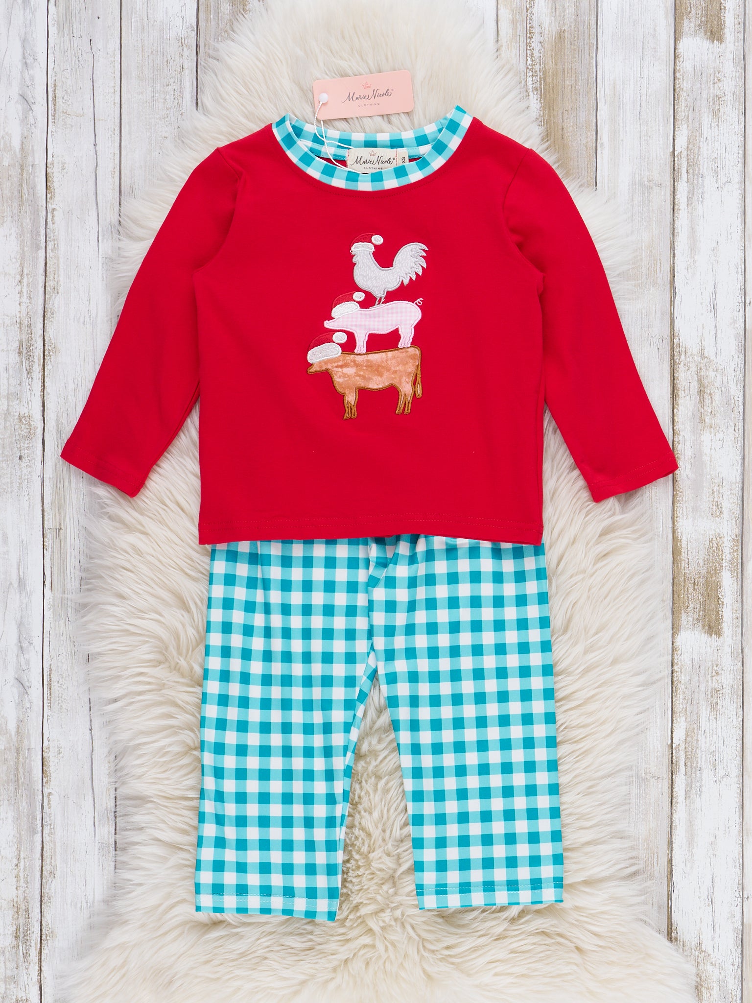 Cattle & Pumpkins Express Embroidered Gingham Outfit