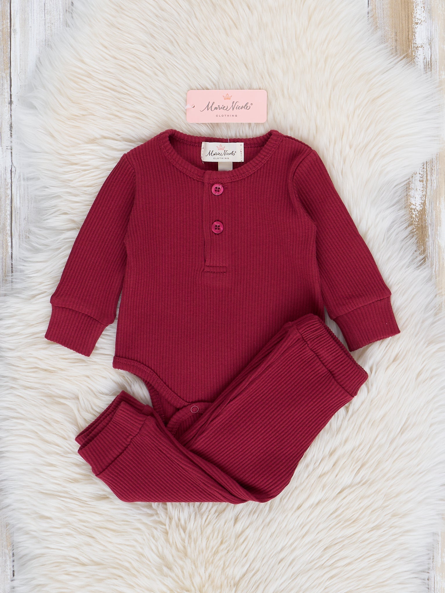 Waffle Knit Henley & Joggers Set in Two Colors - Unisex