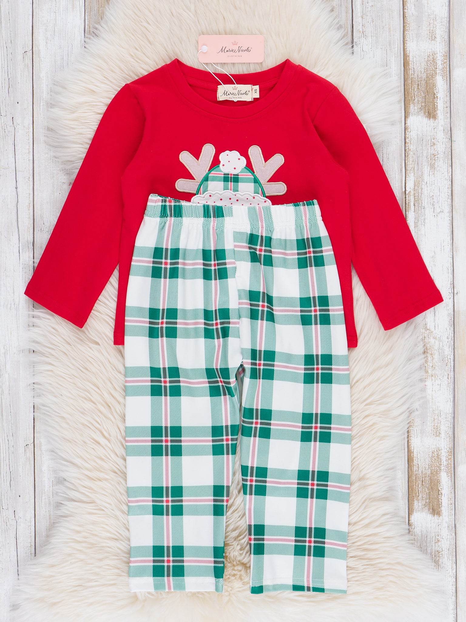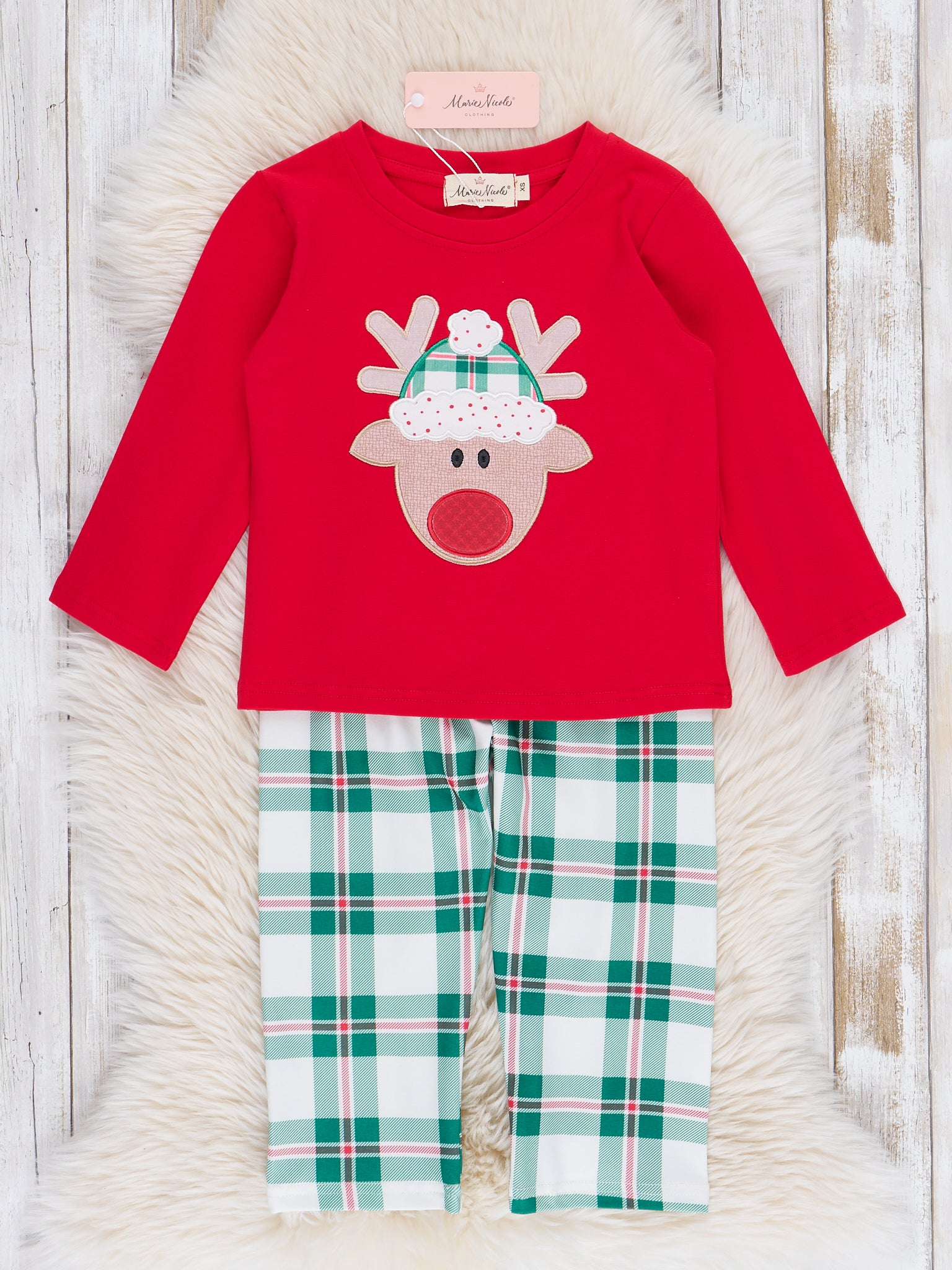 Red & Green Plaid Reindeer Outfit
