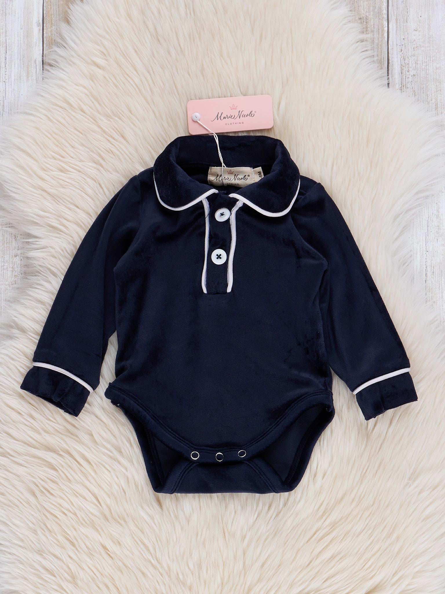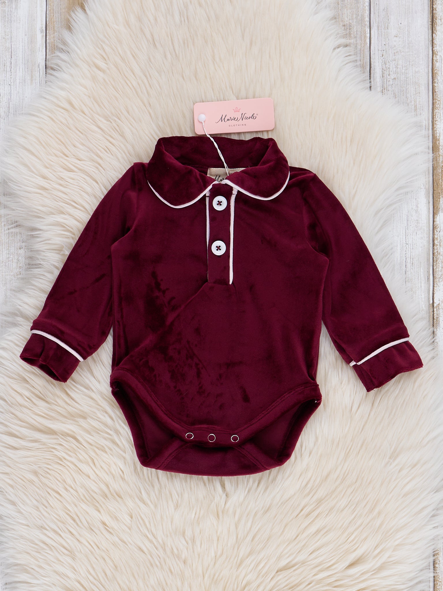 Bedtime is a royal affair with the Christmas Velvet sibling set. This classic velvet romper from Marie Nicole Clothing features a three-button detail with white piping. They'll drift off to dreamland in pure comfort, ready to conquer the adventures of their dreams.