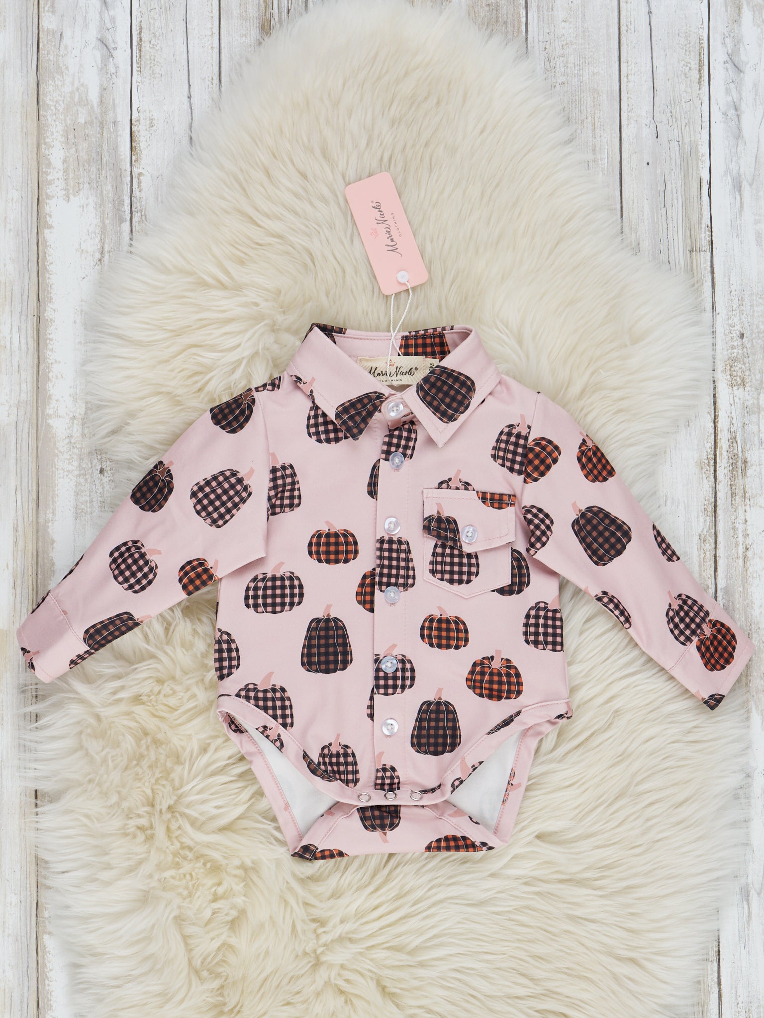 Brown & Orange Pumpkin Harvest Raglan Romper