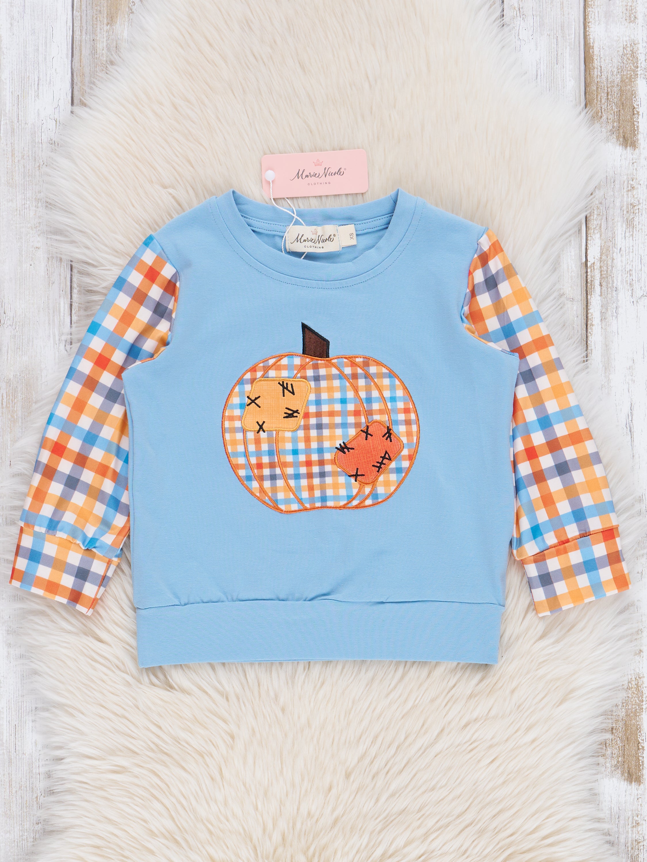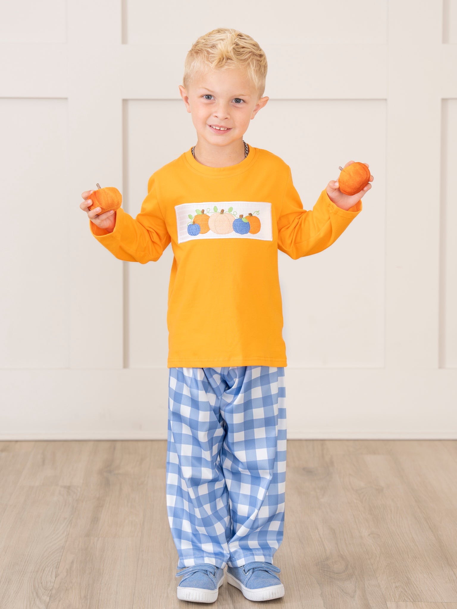 Pumpkin Patch Skies Embroidered Plaid Outfit