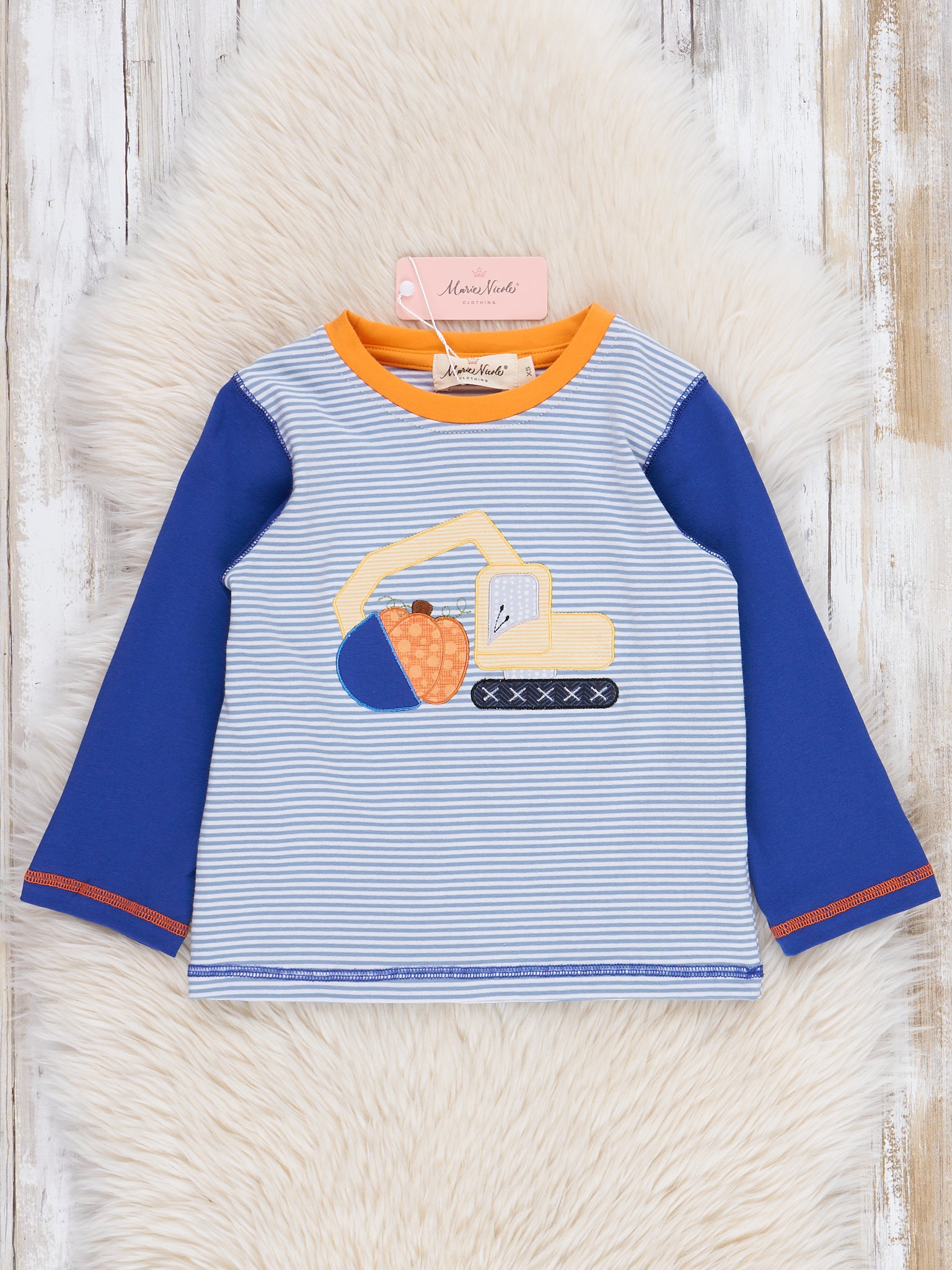 Striped Farm Truck Embroidered Pumpkin Shirt