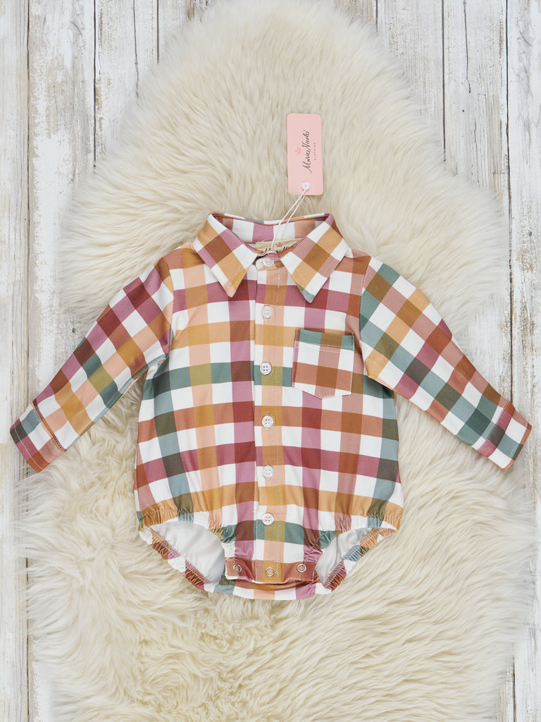 Cabin Critter Smocked Embroidered Plaid Johnny