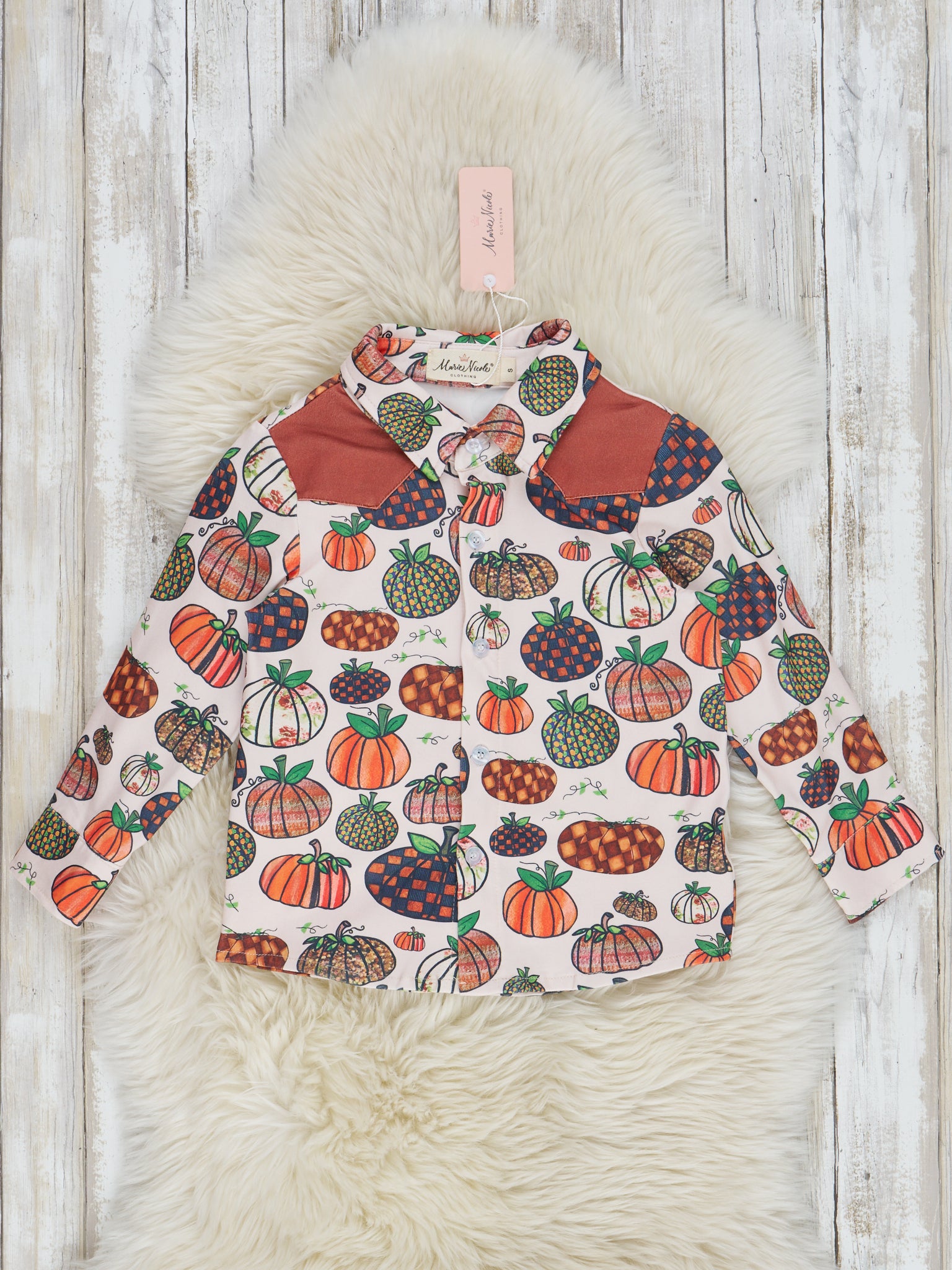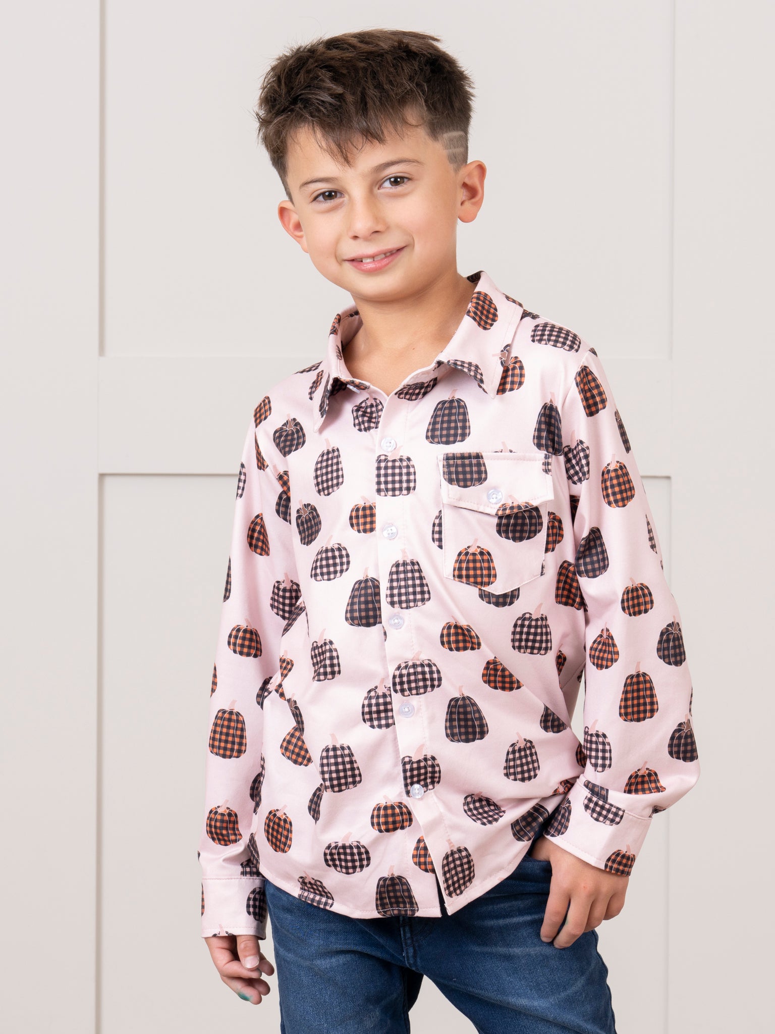 Soft Pink Plaid Pumpkins Button Up Shirt