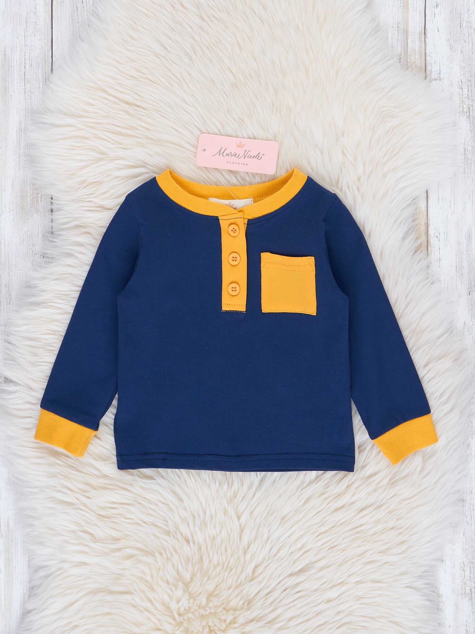 Turquoise & Yellow Stripes Pocket Raglan Shirt