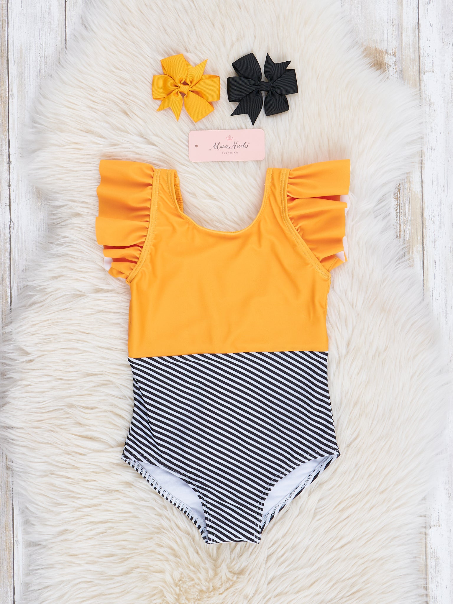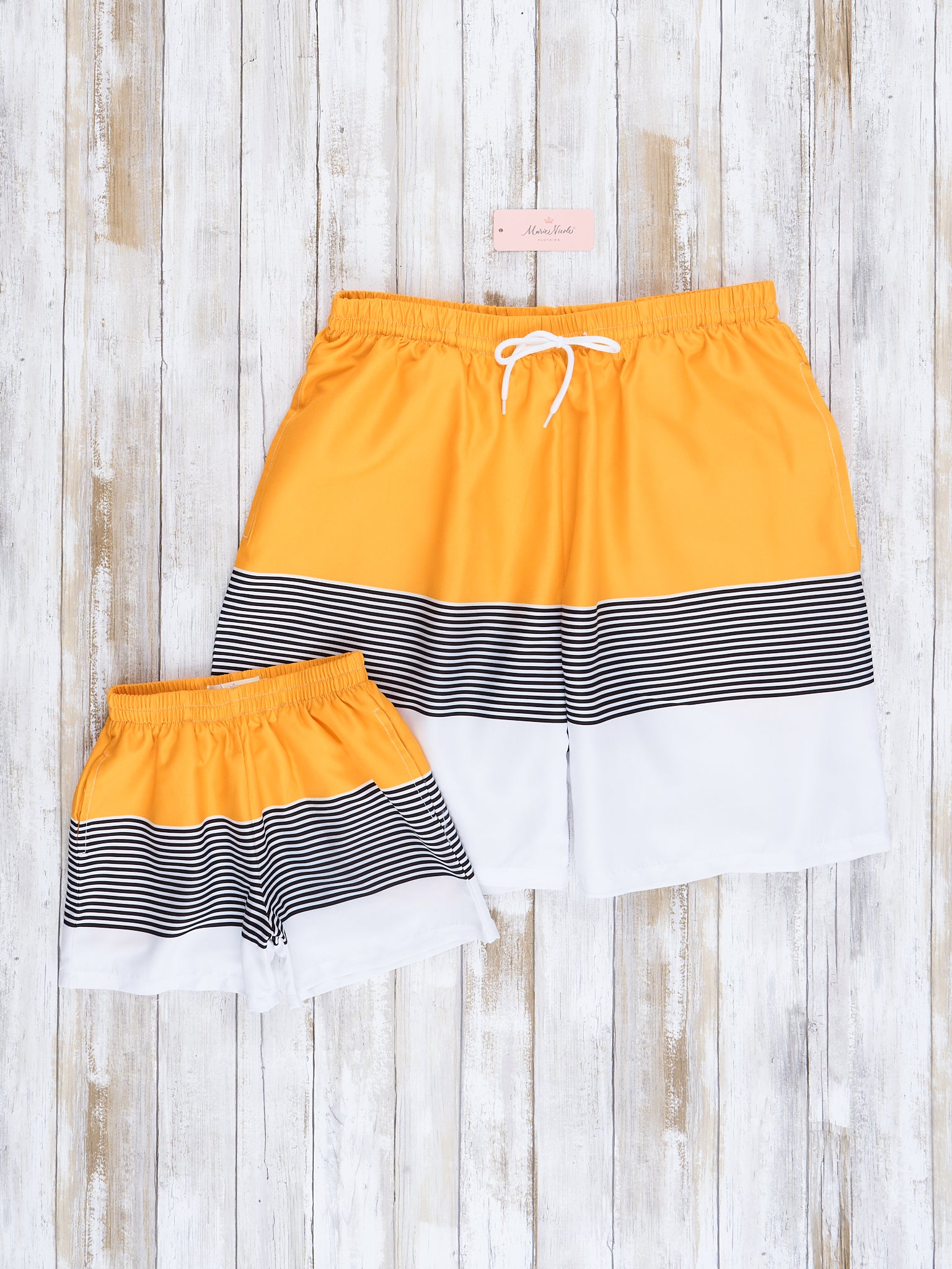 Keep everyone afloat with style in these fun and stylish swimsuits! With its classic stripe print, Family Yellow & Black Stripes Swimsuits are sure to have you equipped for all your beach or pool adventures. So why not make a splash with the whole family?