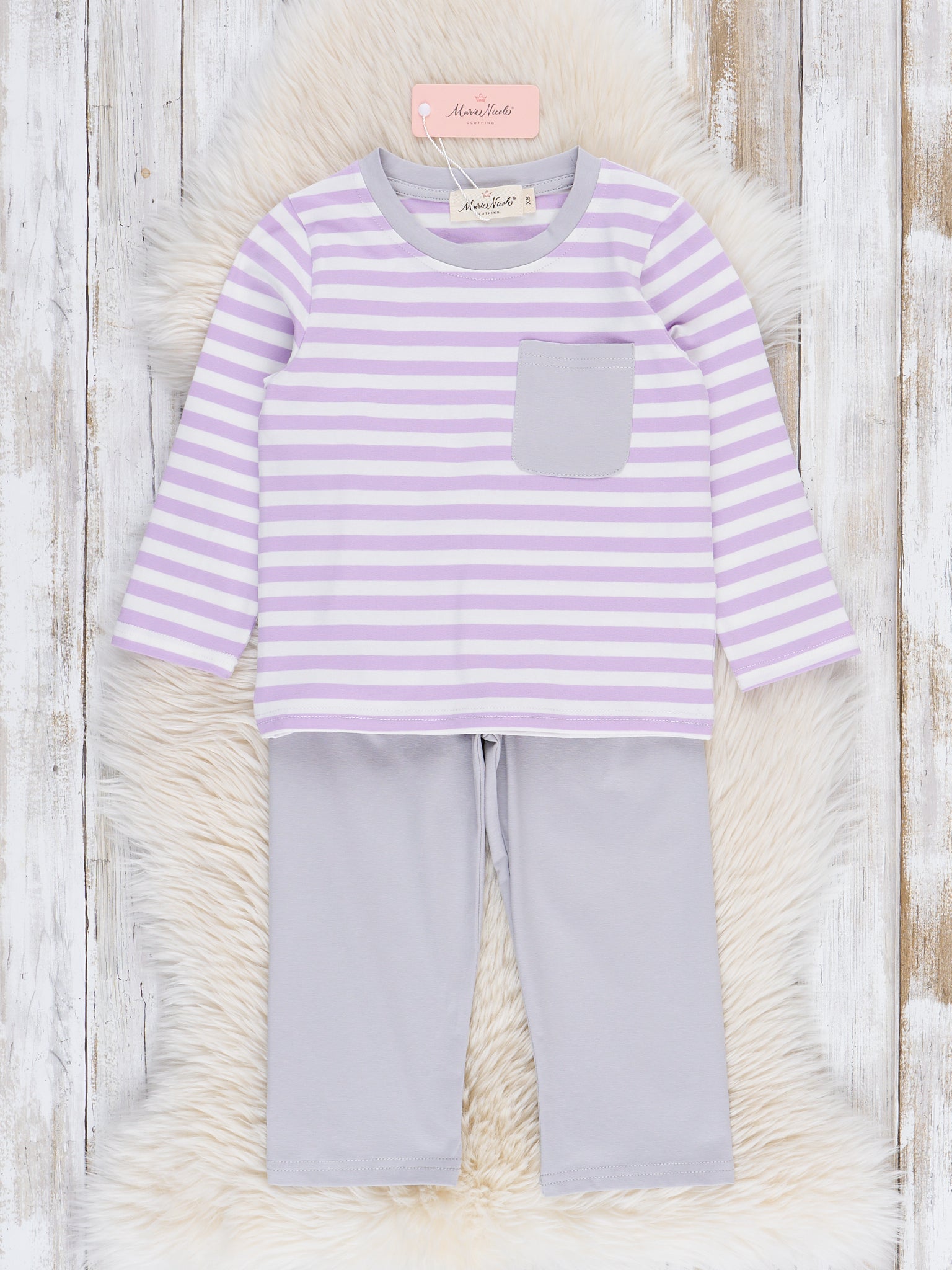 Heather Purple & Grey Striped Outfit