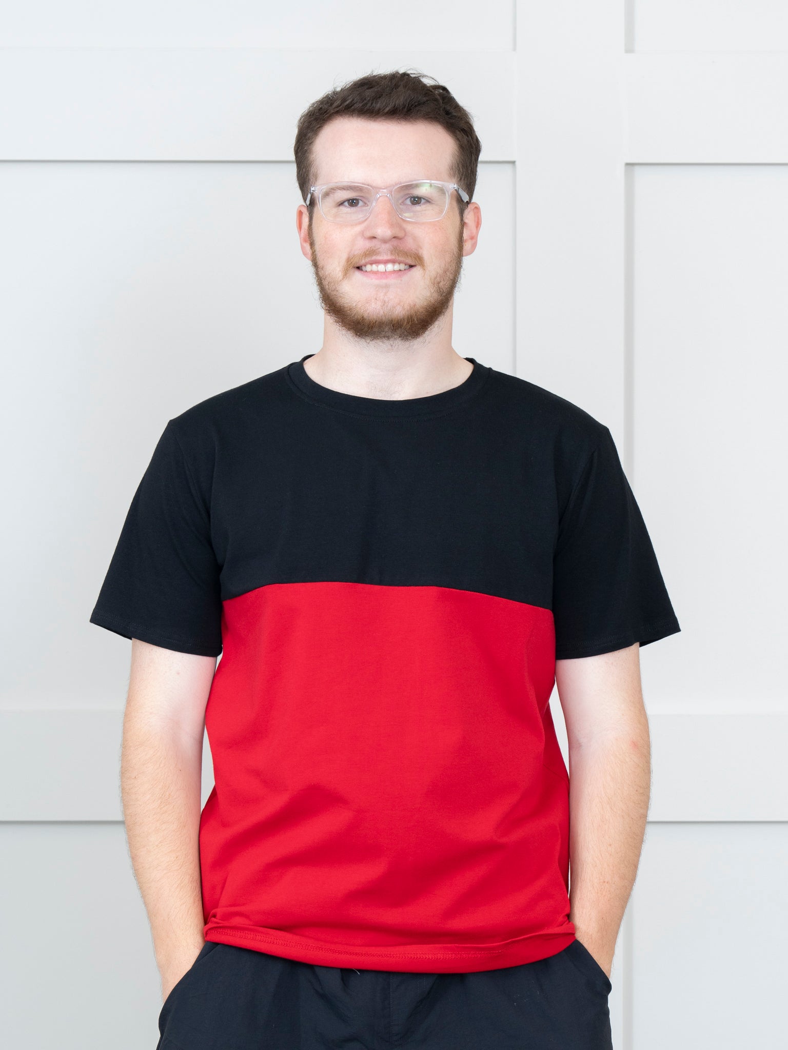 Unisex Red & Black Color Block Shirt