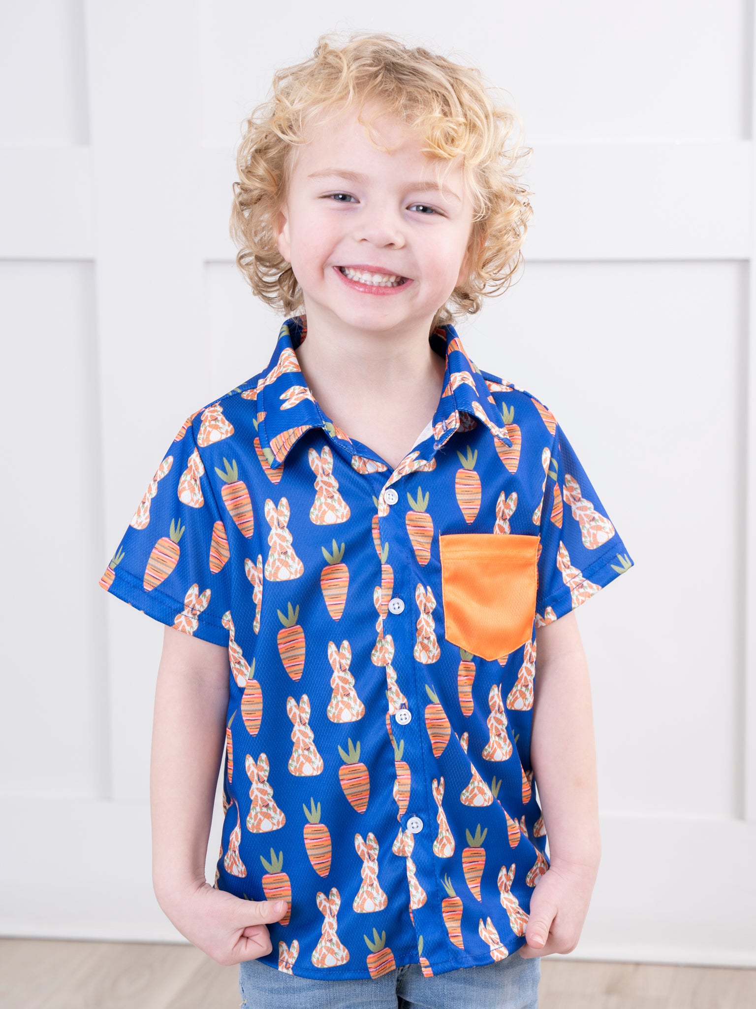 Blue & Orange Rabbit Food Pocket Shirt