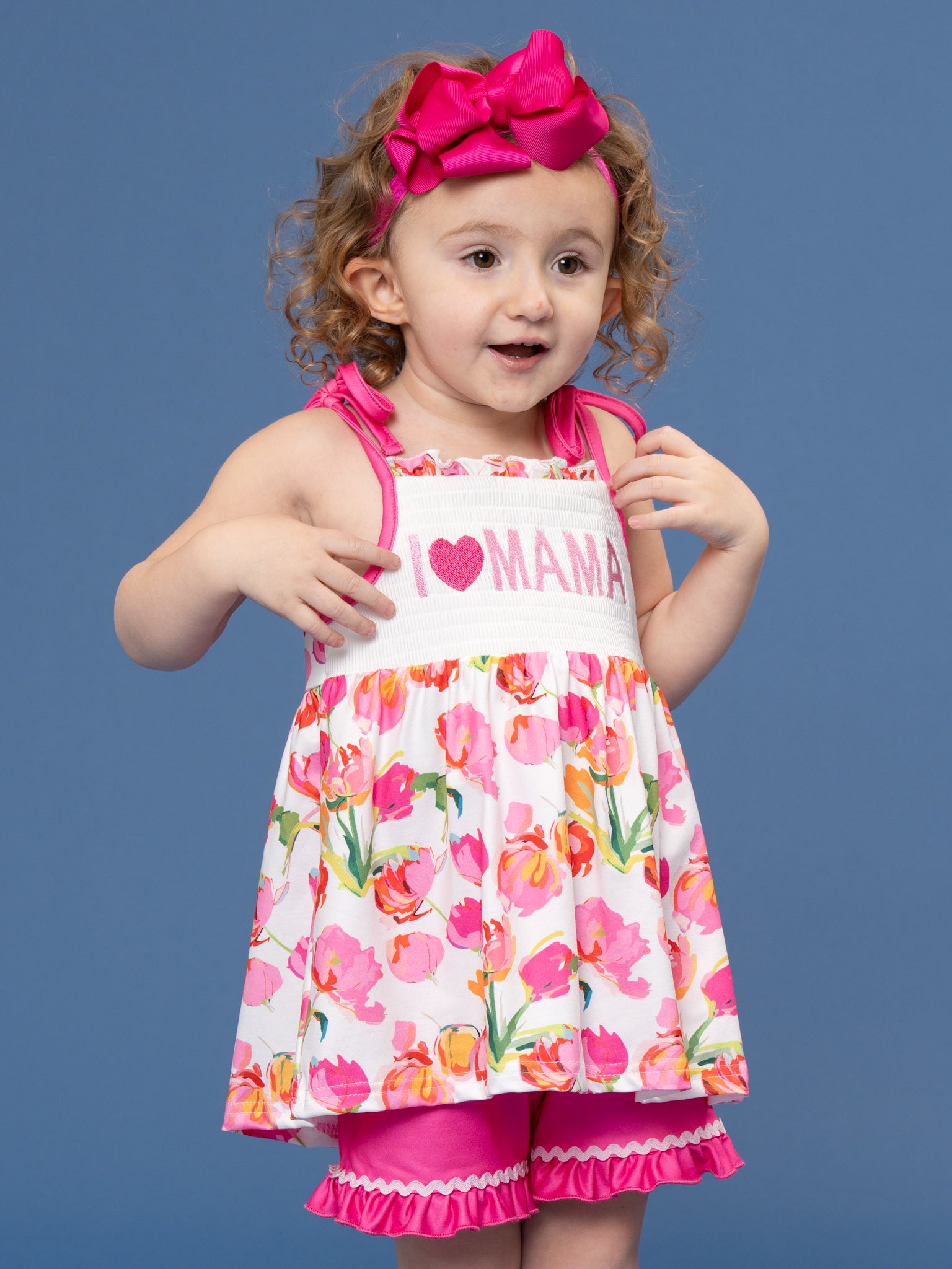 The Garden Party Romper by Marie Nicole Clothing features a cheerful print of party hats, flowers, and garden motifs, accented with contrasting long sleeves and cuffs for a playful, layered look. Designed for comfort and movement, this romper makes festive occasions and everyday adventures a breeze.