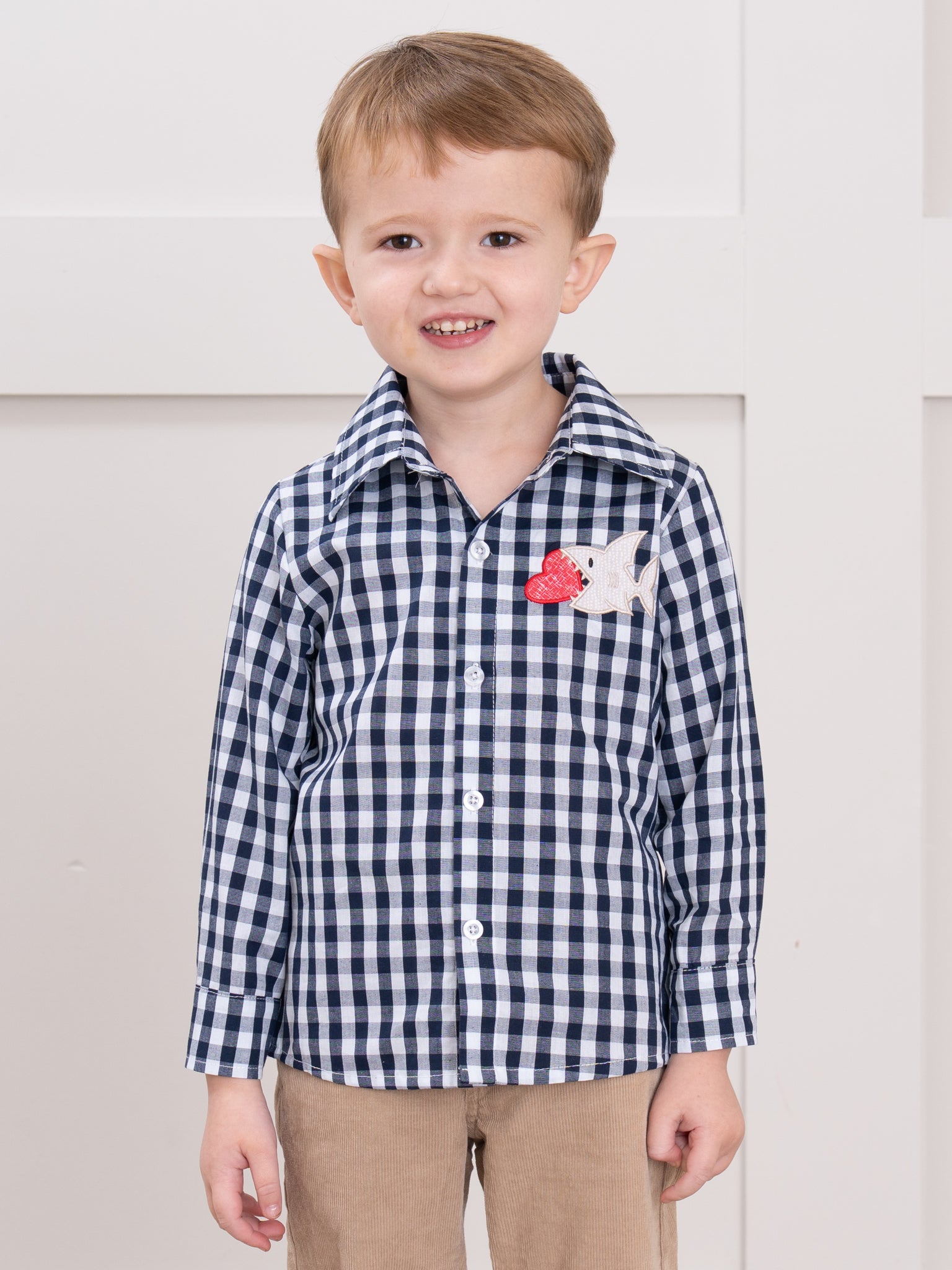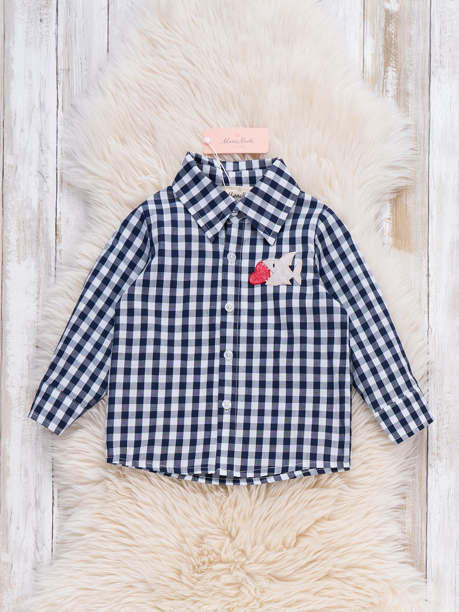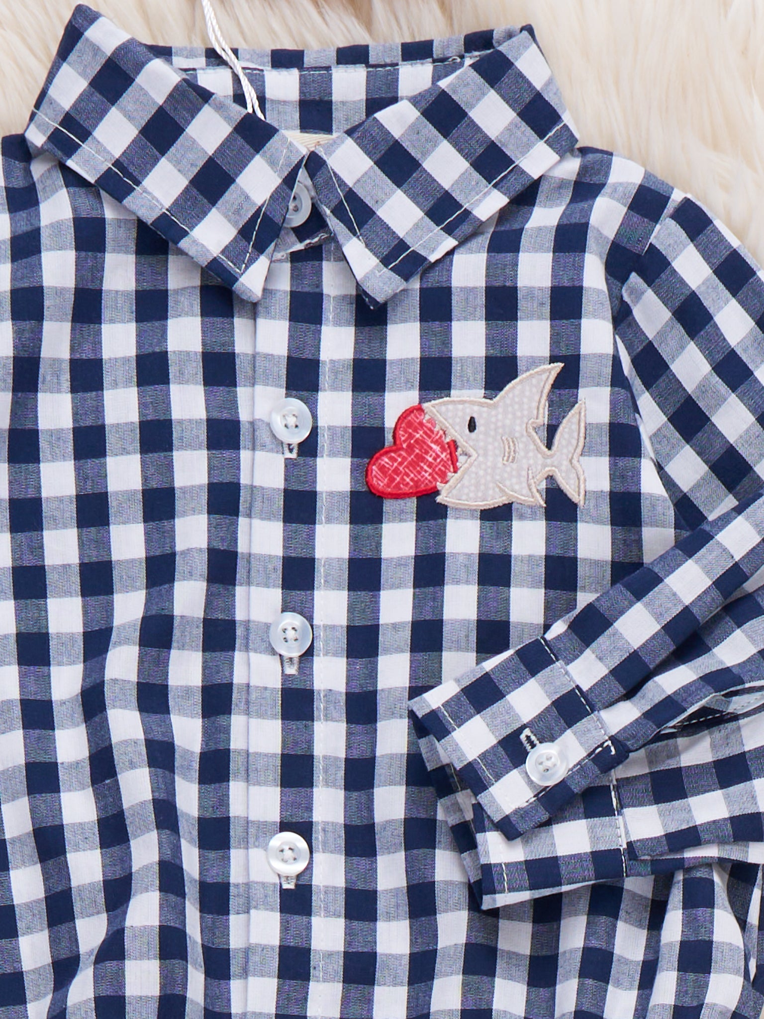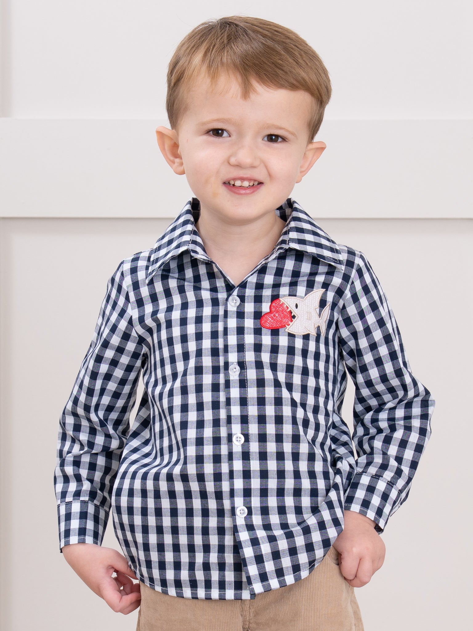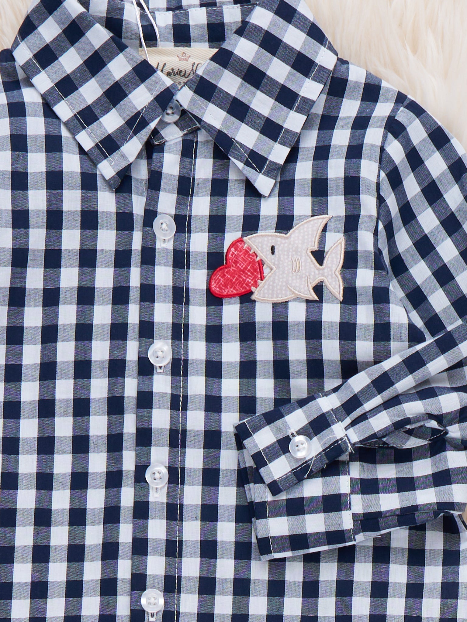 Heartfelt Patch Embroidered Cotton Button-Up Shirt