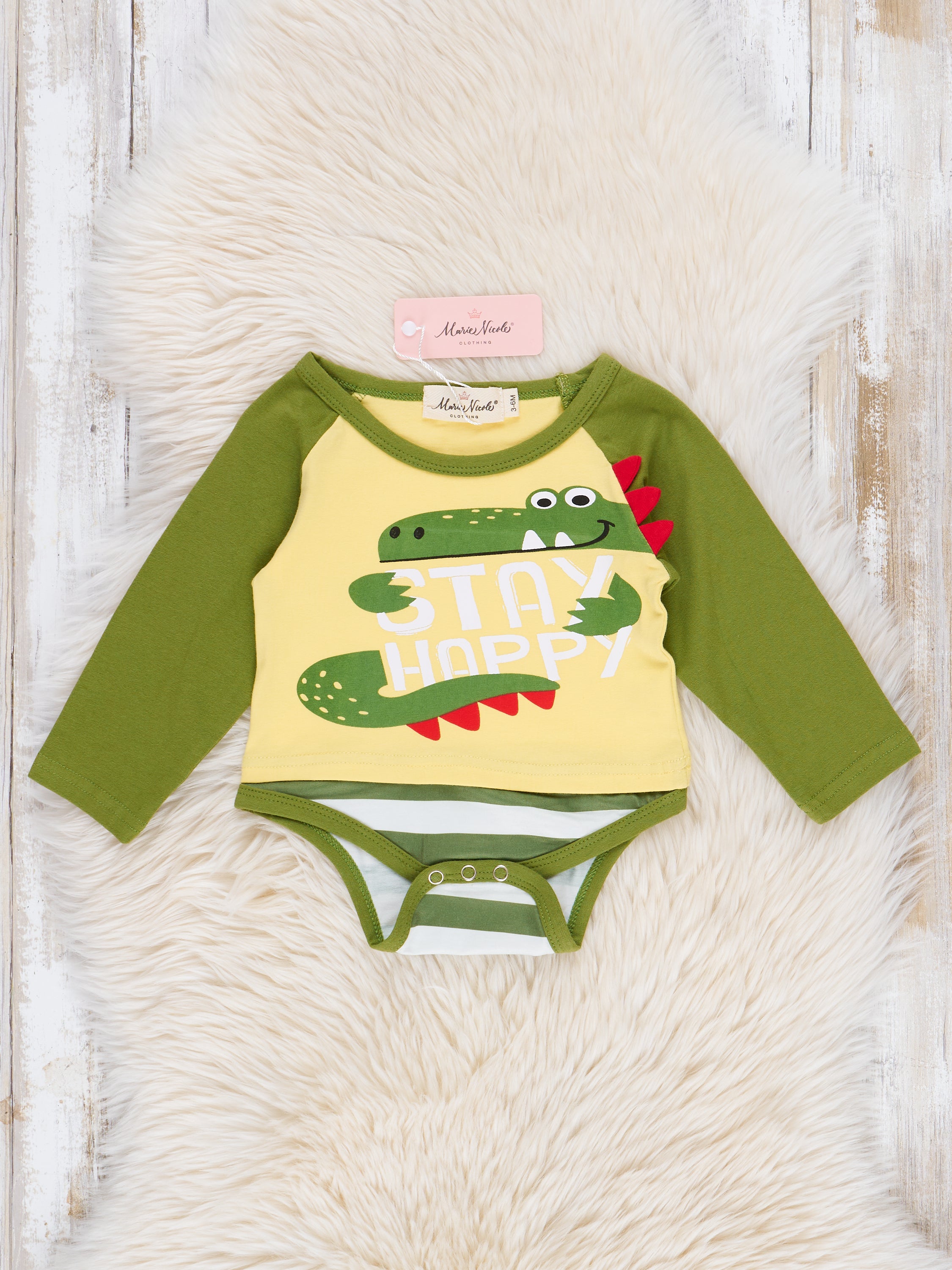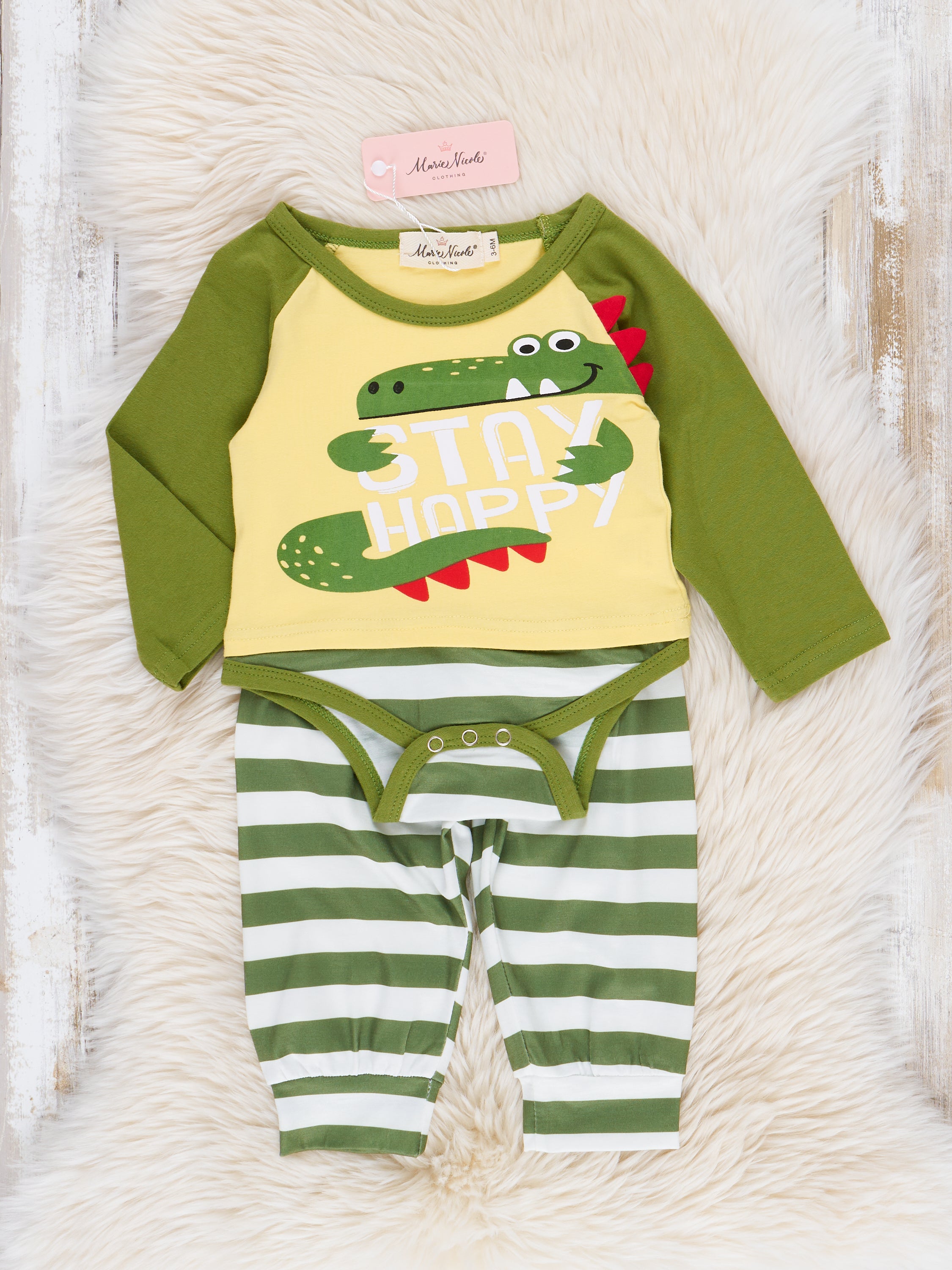 Bright Green Alligator Raglan Romper Outfit