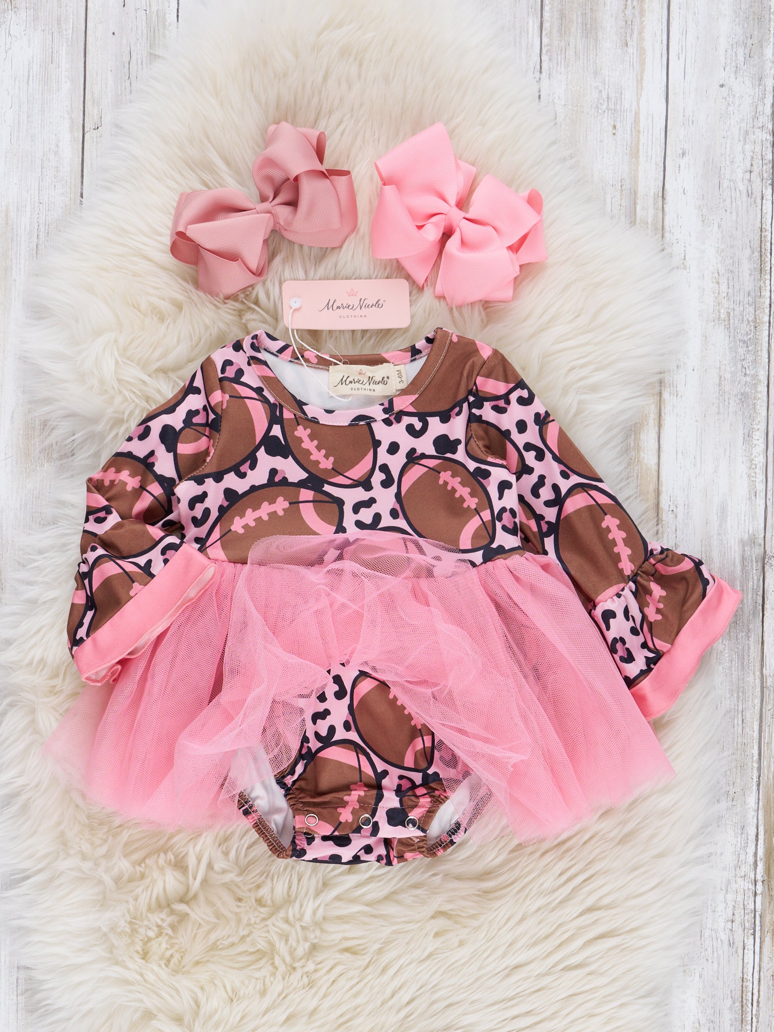 Bright Pink & Brown Football Tulle Romper